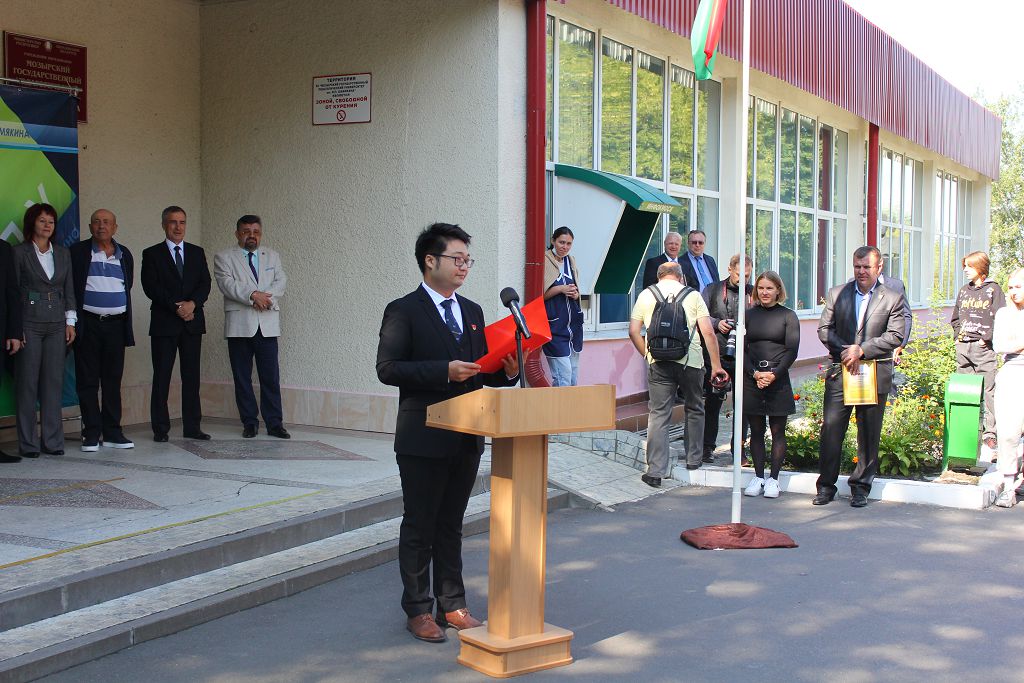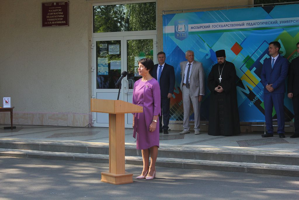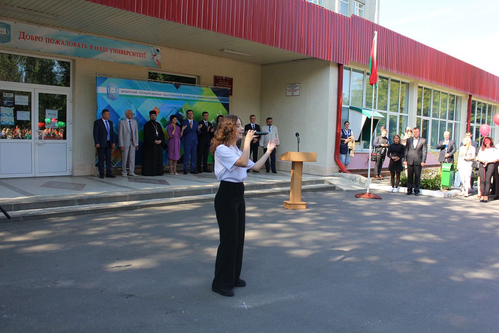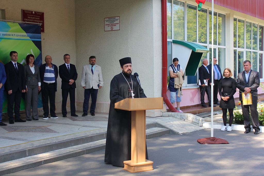 На линейку, посвященную Дню знаний, пришли почетные гости. Поздравления и теплые пожелания прозвучали из уст: депутата Палаты представителей Национального собрания Республики Беларусь Назаренко Валентины Алексеевны, начальника отдела идеологической работы и по делам молодежи Мозырского районного исполнительного комитета Миронычевой Ирины Ефимовны, заместителя председателя Совета депутатов Мозырского районного Совета депутатов Сосновца Олега Сергеевича, председателя Гомельского областного комитета Белорусского профсоюза работников образования и науки Филипцова Николая Акимовича, известного общественно деятеля и мецената Воскана Айказовича Чобаняна, заместителя председателя синодального отдела религиозного образования и катехизации Белорусской православной церкви Игумена Авксентия.