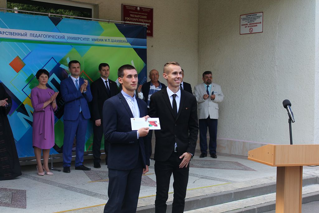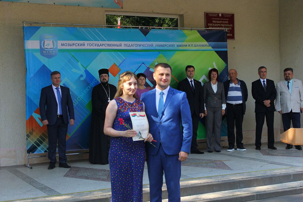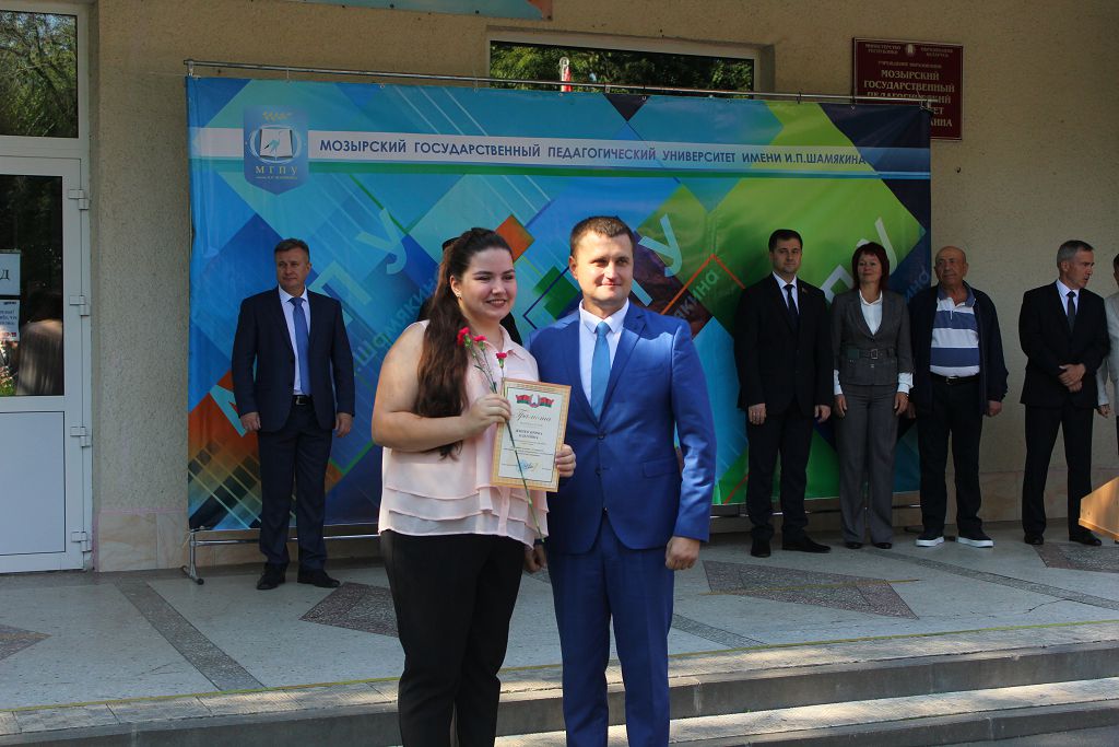В торжественной обстановке были вручены грамоты и благодарности Мозырского государственного педагогического университета и от первичной профсоюзной организации университета преподавателям и студентам.