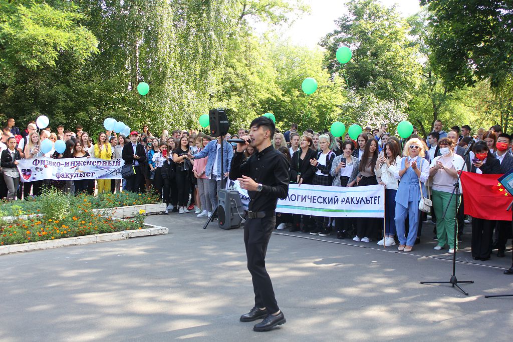 Впервые в этом году музыкальные поздравления прозвучали от студентов из Китайской Народной Республики. Мелодичный китайский язык оставил неизгладимые впечатления у присутствующих.