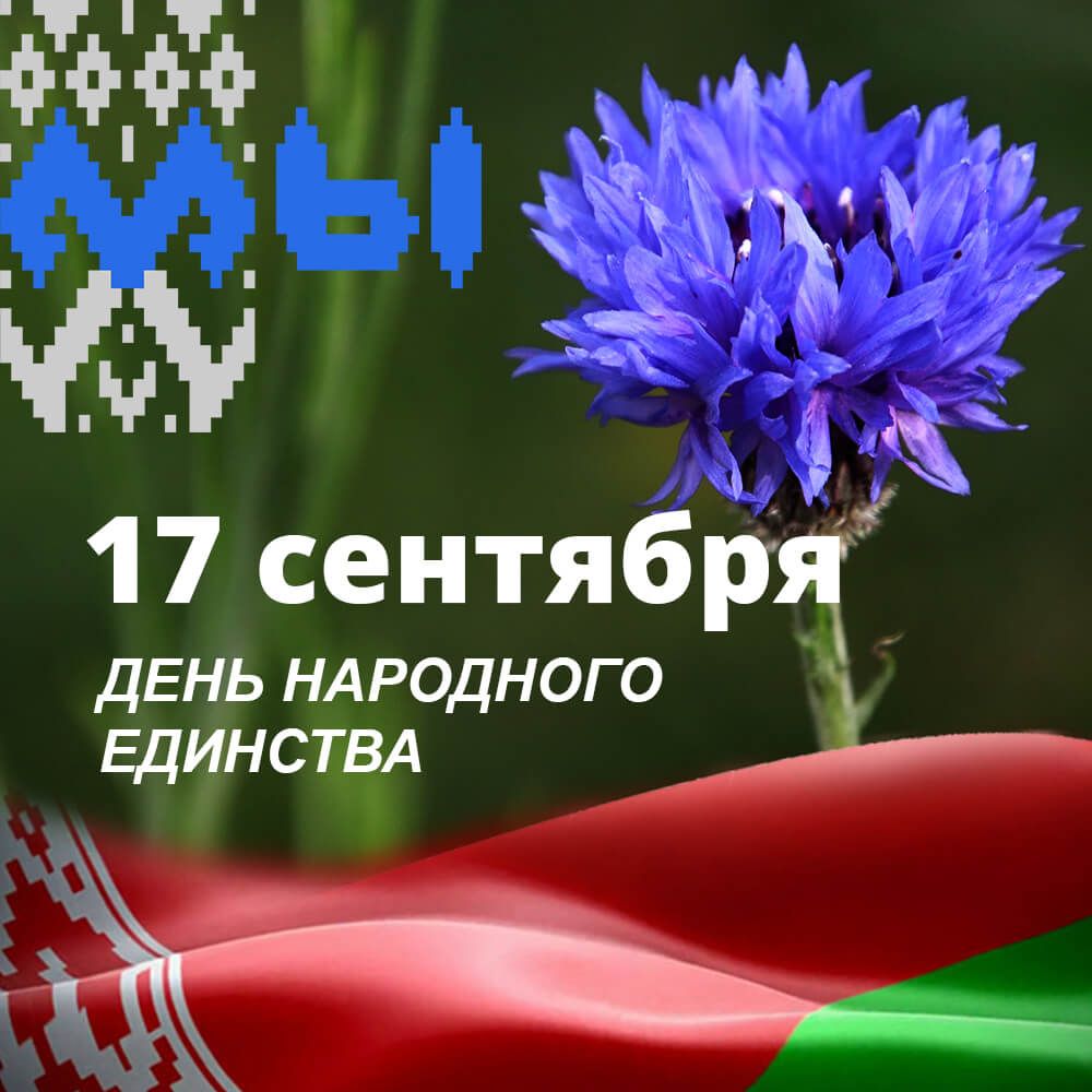 ПОЗДРАВЛЯЕМ! Подробности Опубликовано 17.09.2021 07:35 Дорогие друзья и коллеги! С Днем Народного Единства всех нас и всех жителей нашей Беларуси! Счастья, процветания, гармонии, дружбы, чистого неба, уважения и любви всем нам! Мы - едины!