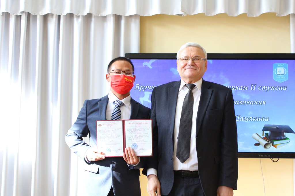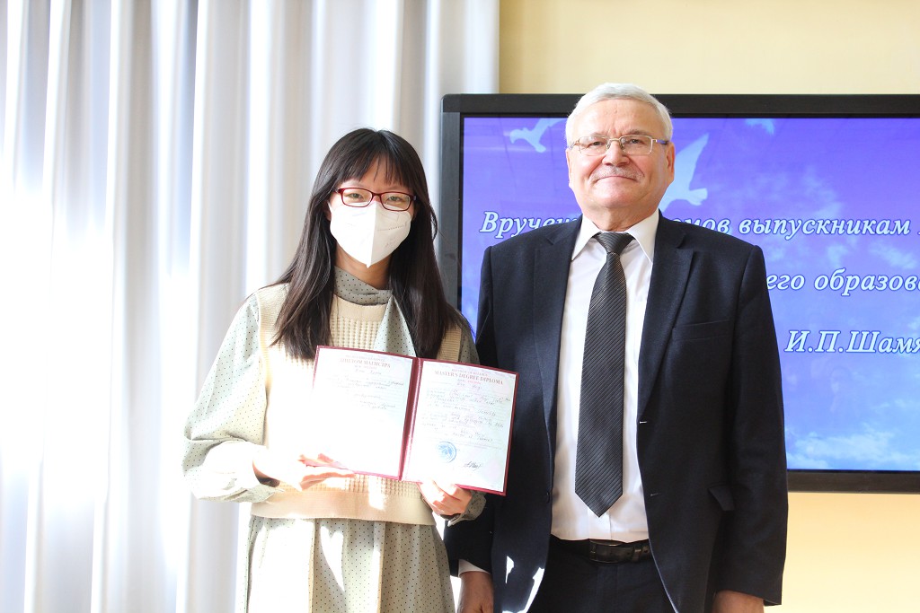 С ответным словом выступил Чэн Синь, который выразил слова благодарности руководству университета, своим преподавателям. Поблагодарил от лица всех магистрантов из КНР за опыт, знания и умения, приобретенные за время обучения в университете.