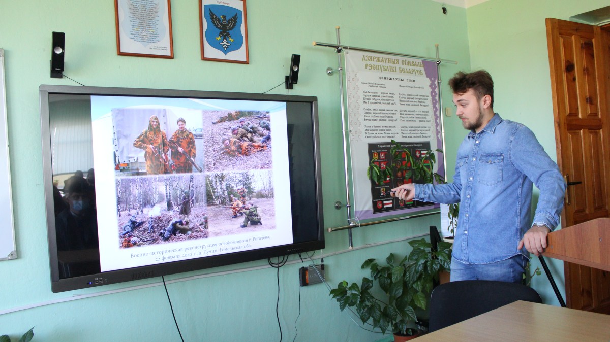 Карасев Б., студент 3 курса специальности «История и обществоведческие дисциплины», руководитель военно-патриотического клуба «Доблесть», ознакомил с организацией деятельности и основными направлениями работы клуба. Рассказал об участии студентов специальности в поисковой работе, организации военно-исторических реконструкций событий ВОВ.