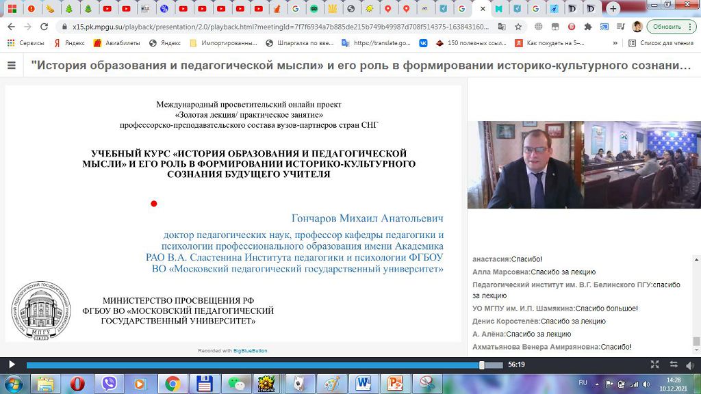 Благодарим отдел информационных технологий и инновационной деятельности, в частности начальника отдела А.А. Иваненко, за грамотное сопровождение во время подключения и просмотра онлайн-лекции.