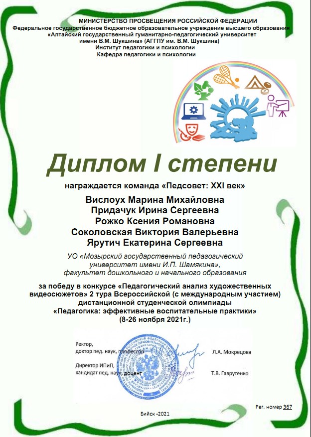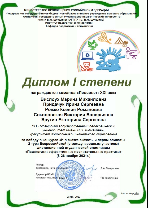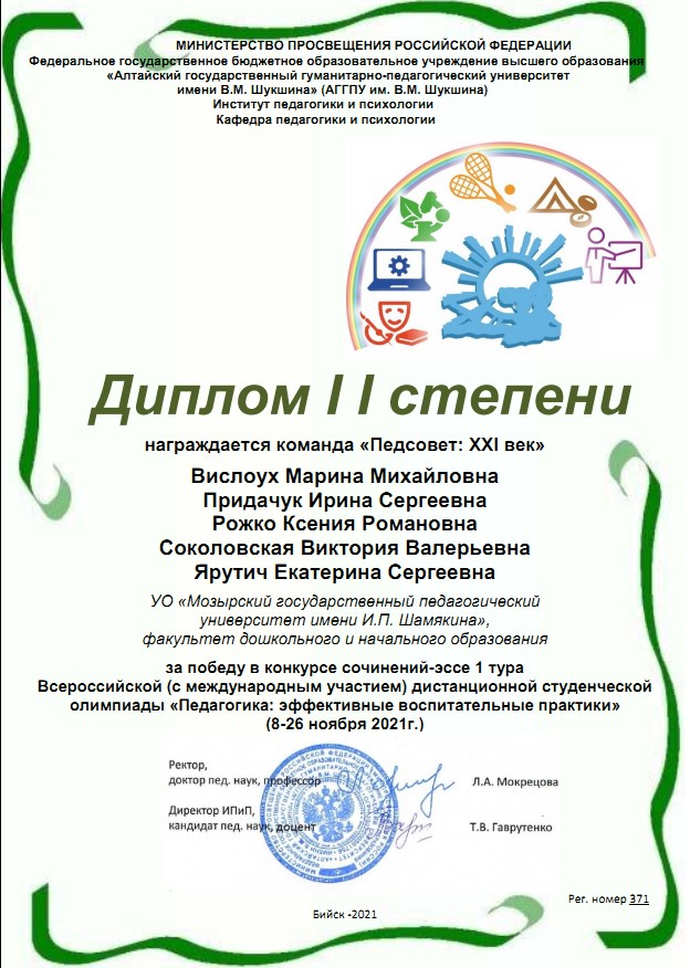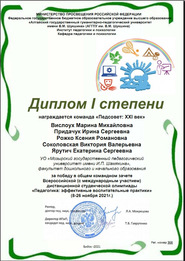 ПОЗДРАВЛЯЕМ ПОБЕДИТЕЛЕЙ ВСЕРОССИЙСКОЙ (С МЕЖДУНАРОДНЫМ УЧАСТИЕМ) СТУДЕНЧЕСКОЙ ОЛИМПИАДЫ «ПЕДАГОГИКА: ЭФФЕКТИВНЫЕ ВОСПИТАТЕЛЬНЫЕ ПРАКТИКИ»
