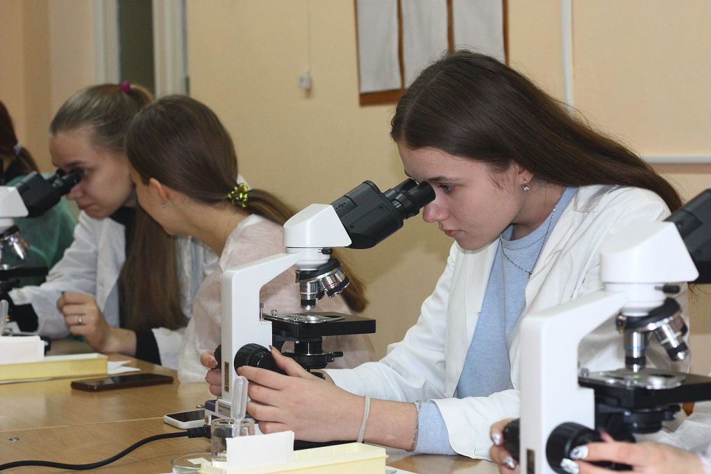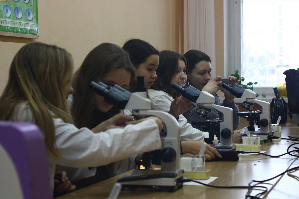 В ходе проведения занятий школьники ознакомились с учебно-исследовательской базой факультета, научились правилам работы современным световым микроскопом, изготовлению простейших цитологических препаратов, познакомились с методикой определения размеров микроскопических объектов с помощью окуляр и объект-микрометра. Особый интерес у ребят вызвало рассмотрение разнообразных цитологических и гистологических препаратов.