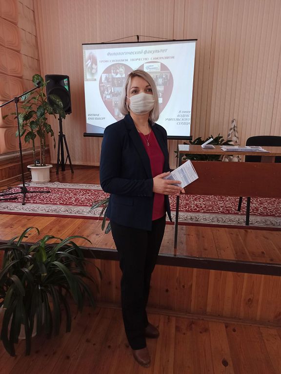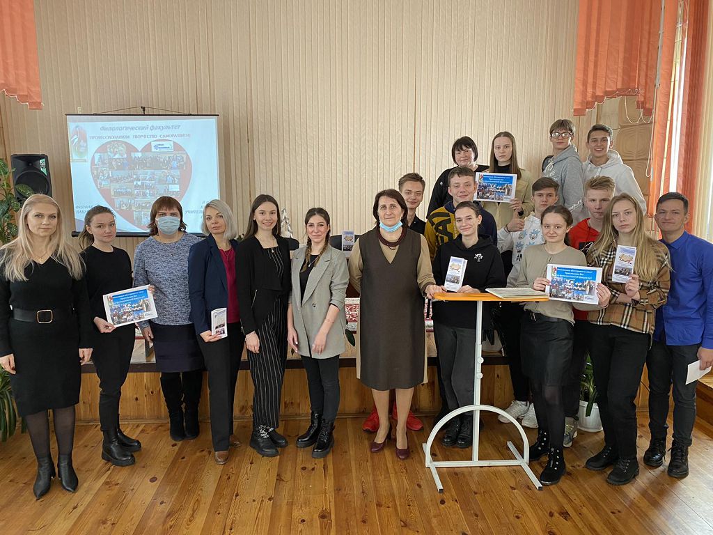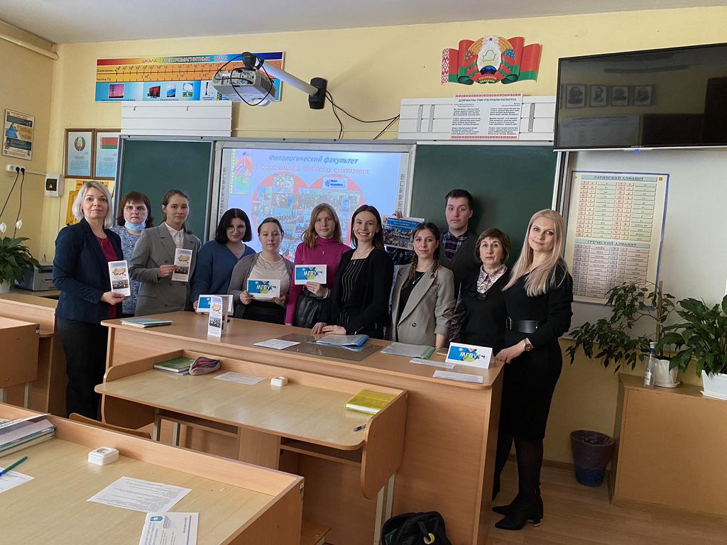 Учащиеся школ г. Житковичи получили сведения об учебной, научной и культурной жизни филологического факультета, о чем в популярной и доступной форме, с использованием электронных презентаций и видеоматериалов, им рассказали студенты филологического факультета Змушко Виктория (учебная группа 4/4) и Лутченко Диана (учебная группа 4/3). Основная идея профориентационного мероприятия заключалась в следующем: учиться на филфаке – значит быть образованным, начитанным, умеющим отлично наладить коммуникацию, знающим историческое прошлое и культурное наследие своей страны и других народов, быть социально активным, находиться в центре общественной жизни университета, города, региона, страны, мира, востребованным и перспективным молодым специалистом. Преподаватели рассказали присутствующим о специальностях университета, набор на которые объявлен в 2022 году, о насыщенной и интересной жизни студентов и педагогического коллектива, об эффективном и полном учебно-методическом обеспечении образовательного процесса, о высокой научной и методической квалификации преподавателей филологического факультета, о возможности не только получить достойное образование, но и обеспечить себе будущее. Учащимся педагогических классов были розданы индивидуальные приглашения с предложениями стать студентами филологического факультета, убедительно рассказано об уникальной возможности оказаться в рядах студентов одного из старейших факультетов университета без вступительных испытаний.
