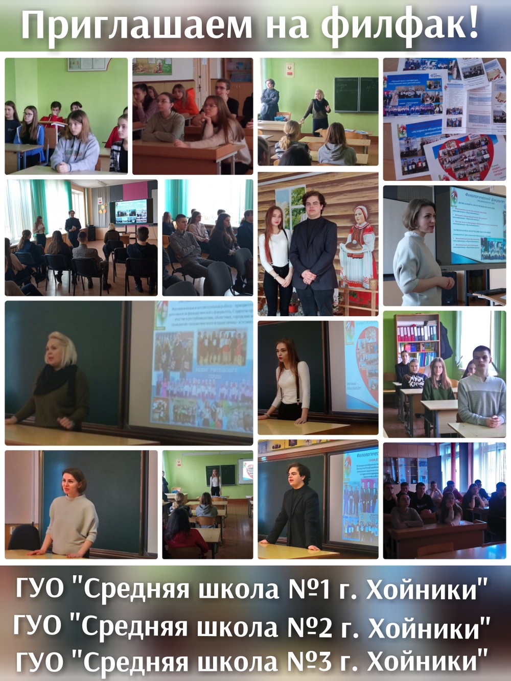 В рамках профориентационной акции «#Я/МЫБУДУЩИЕПЕДАГОГИ» состоялись встречи с учащимися выпускных классов ГУО «Средняя школа № 1 г. Хойники», ГУО «Средняя школа № 2 г. Хойники», ГУО «Средняя школа № 3 г. Хойники».