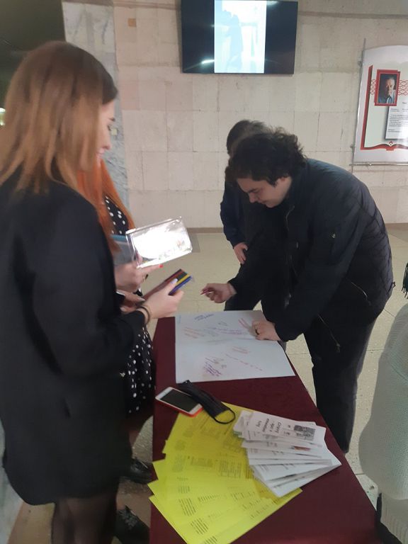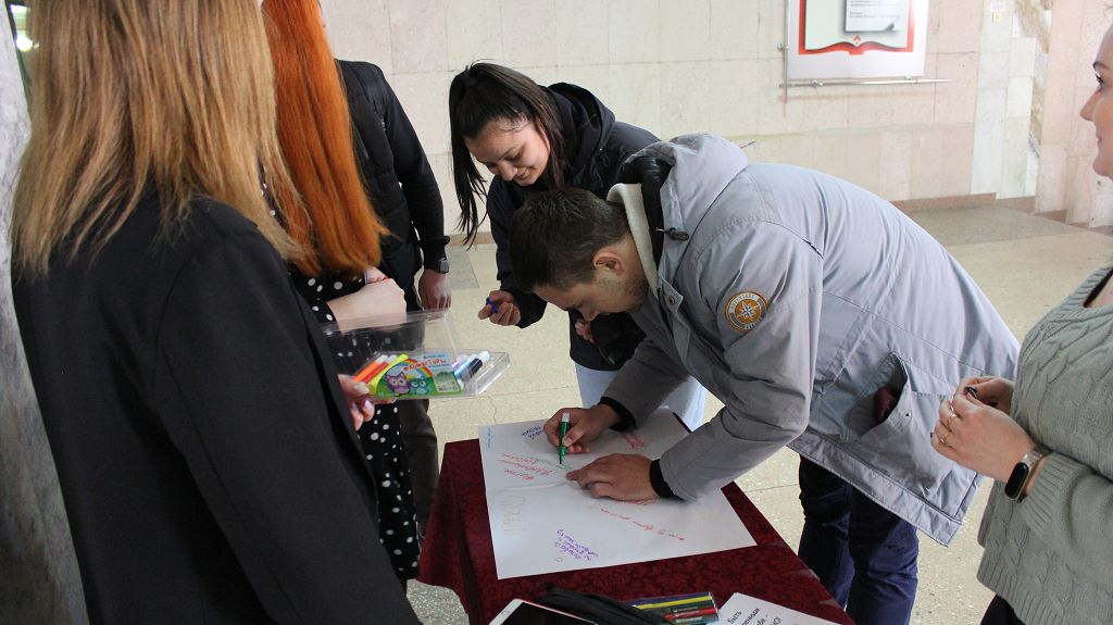 В рамка недели профилактики пропаганды ценности жизни и предотвращения суицидов и суицидального поведения 7 апреля специалисты психолого-педагогической службы и волонтеры университета подготовили информационную площадку, которая была направлена на привлечение внимания каждого студента к проблемам здоровья и здравоохранения, на отказ от вредных привычек, на формирование у молодых людей установок на здоровый образ жизни.