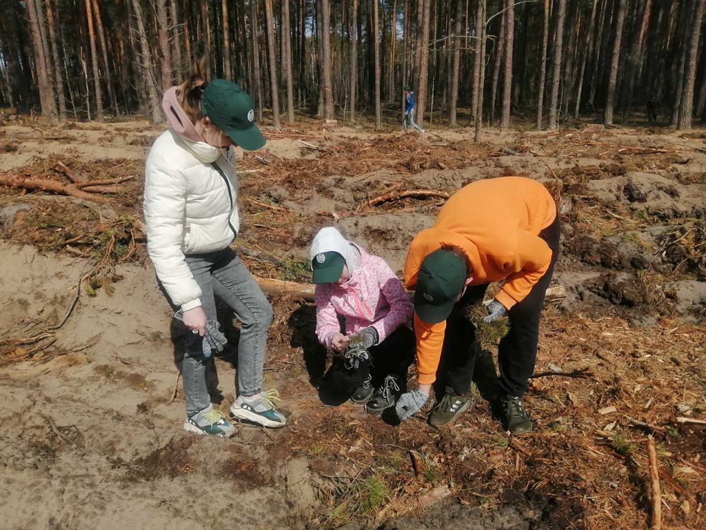 На участке в Михалковском лесничестве Мозырского района, занимающем 2,1 гектара, кипела работа. Здесь студенты и сотрудники посадили саженцы березы и сосны. Мероприятие было организовано совместно с Мозырским опытным лесхозом.