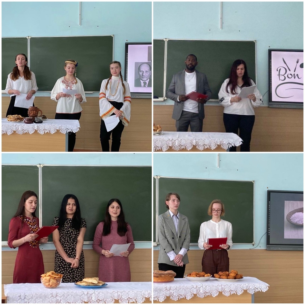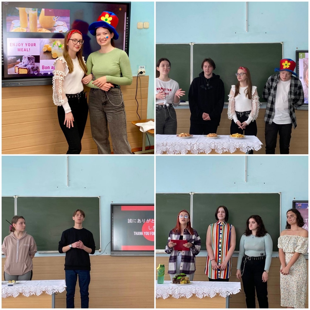 Проект был подготовлен на английском языке, но представление кулинарных традиций и приготовленных блюд осуществлялось на белорусском, французском, японском, английском и туркменском языках в сопровождении яркой и информативной презентации и соответствующей национальной атрибутики в костюмах. Закончилось мероприятие обсуждением кулинарных изысков разных стран и дегустацией блюд и напитков.