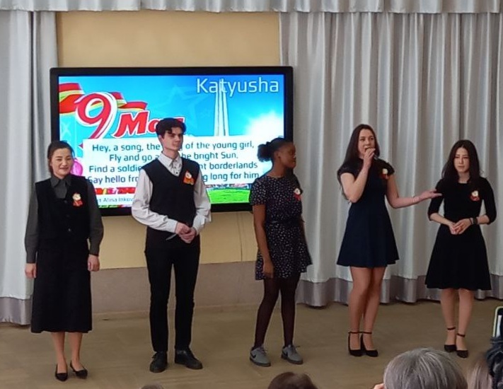 Интернациональным гимном Великой Победе стала песня «Катюша» исполненная на 6 языках мира: туркменском (Поладова Д.), французском (Манвана Б.), английском (Инковцова А.), итальянском (Климович А.), китайском (Ван Л.) и, конечно, русском, при участии всех выступающих.