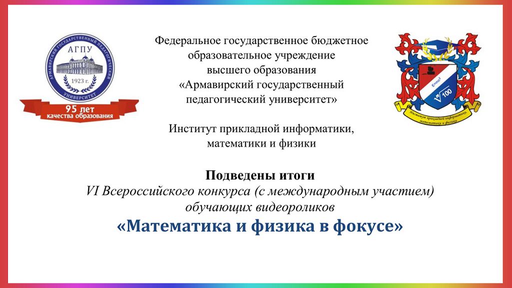 Поздравляем с победой в VI Всероссийском конкурсе (с международным участием) обучающих видеороликов «Математика и физика в фокусе»!