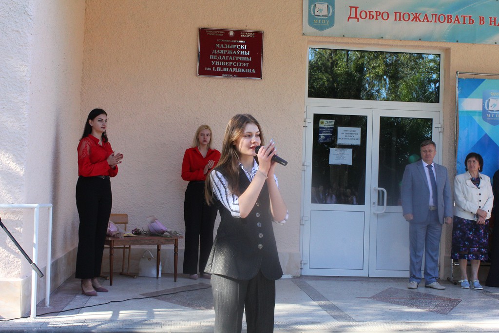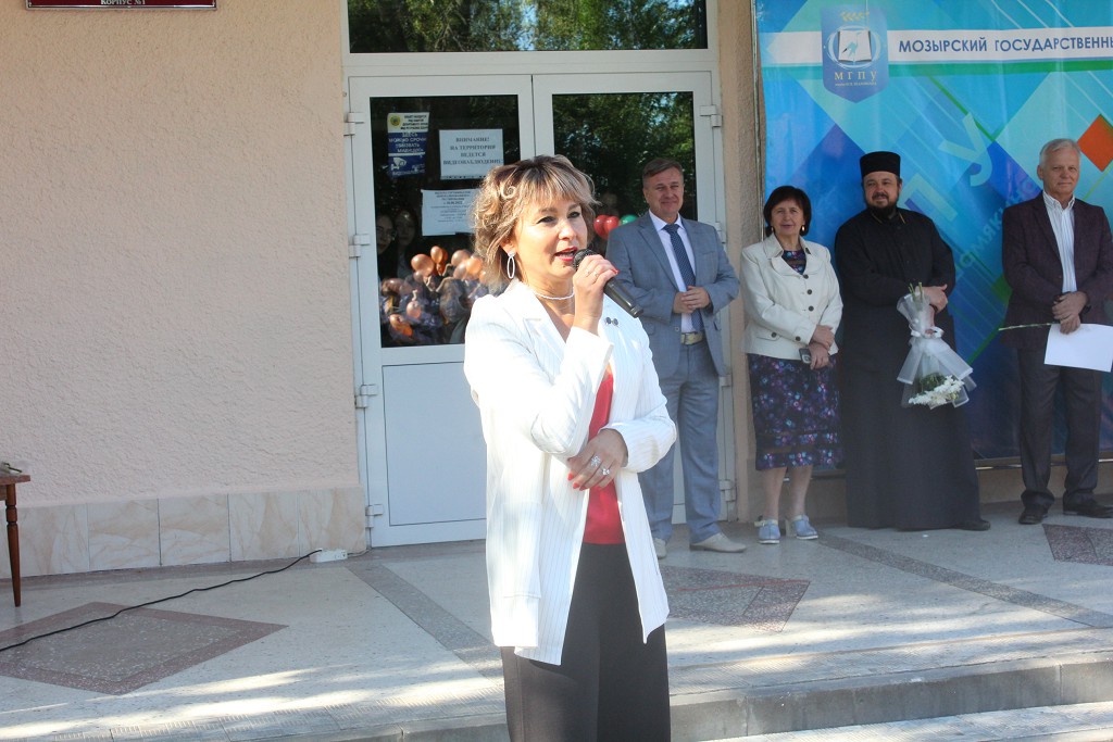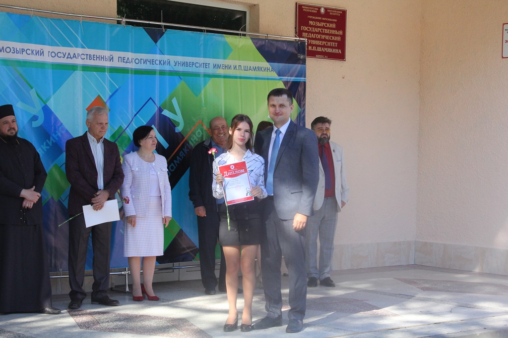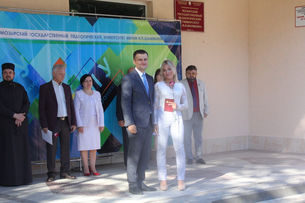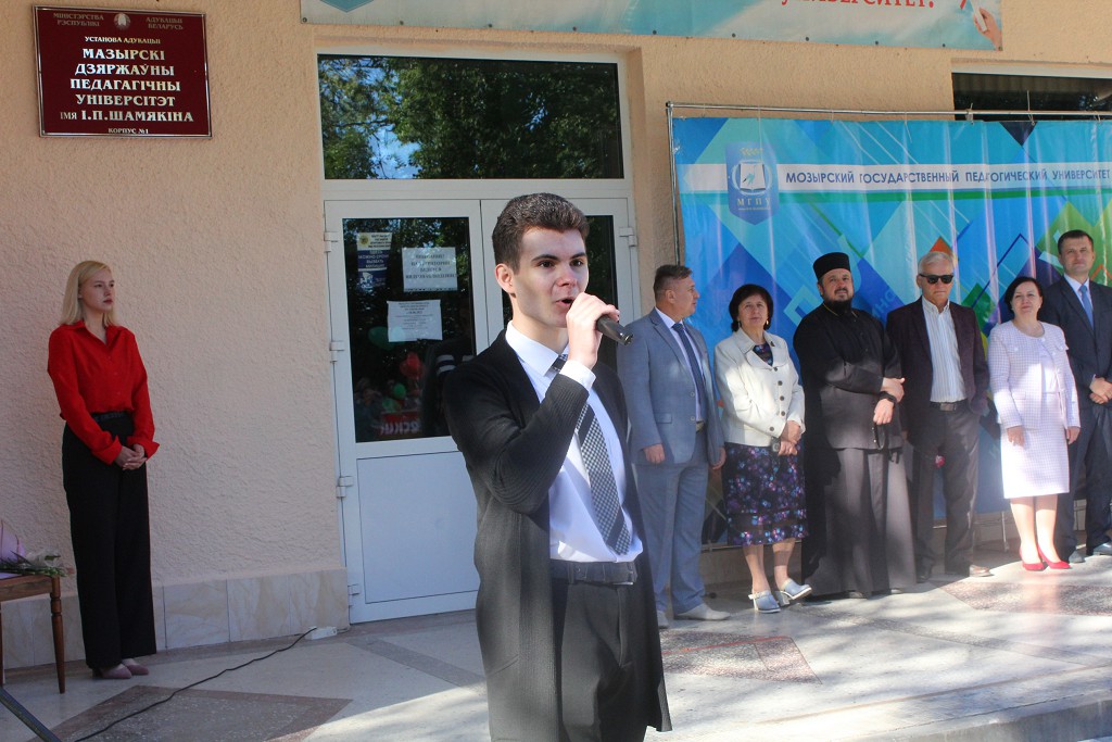 На торжественную церемонию посвящения в студенты пришли почетные гости. Поздравления и теплые пожелания прозвучали от Каленик Елены Антоновны, первого заместителя председателя Мозырского районного исполнительного комитета, от известного общественного деятеля и мецената Воскана Айказовича Чобаняна, заместителя председателя синодального отдела религиозного образования и катехизации Белорусской православной церкви Игумена Авксентия.