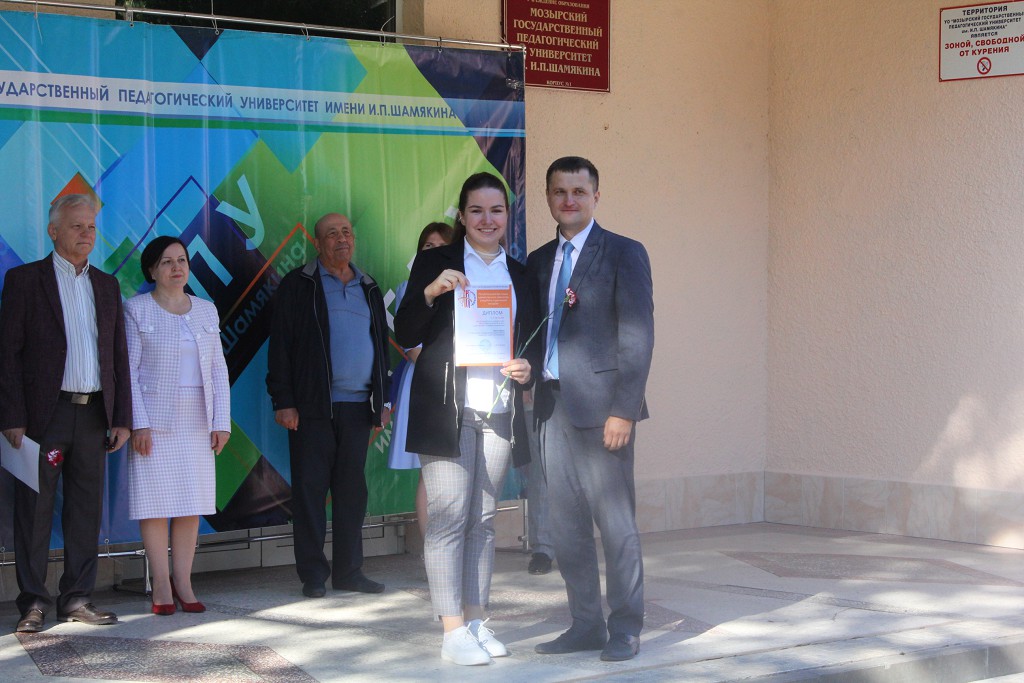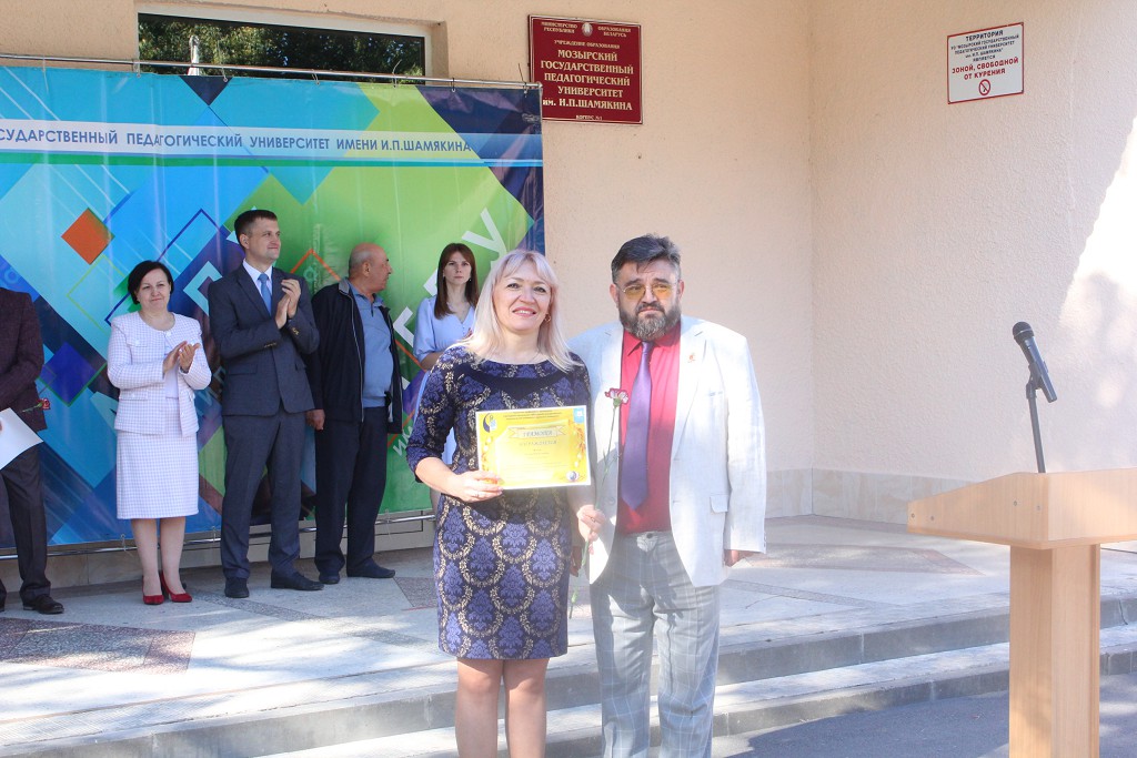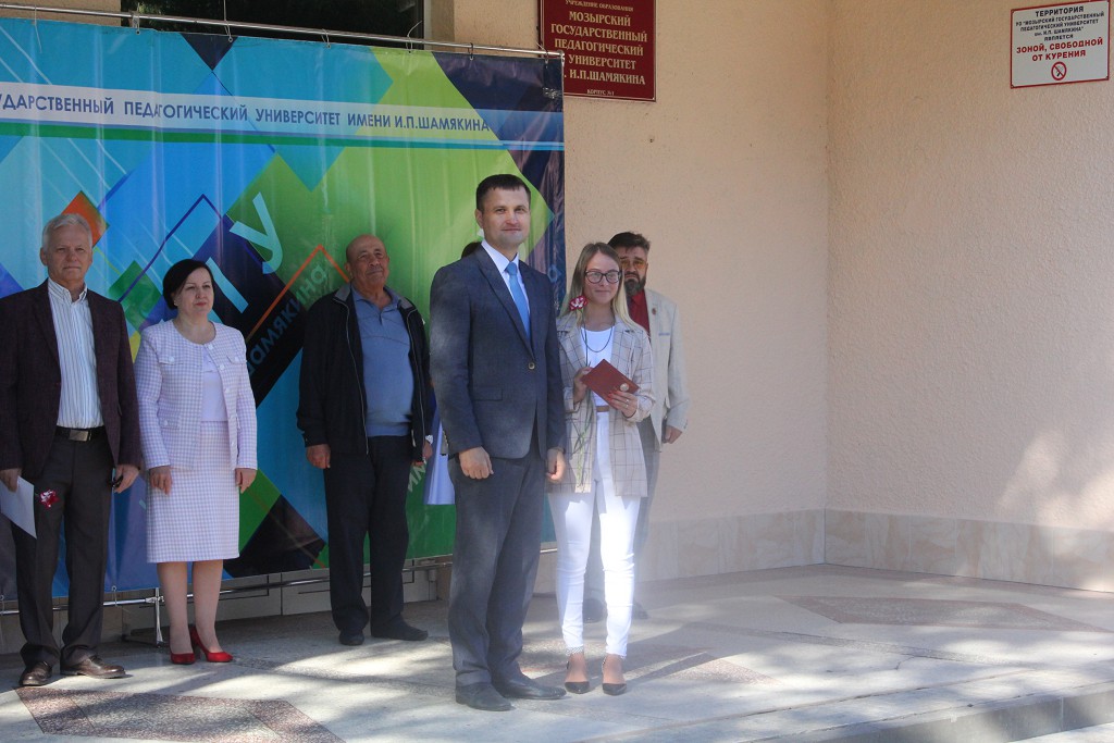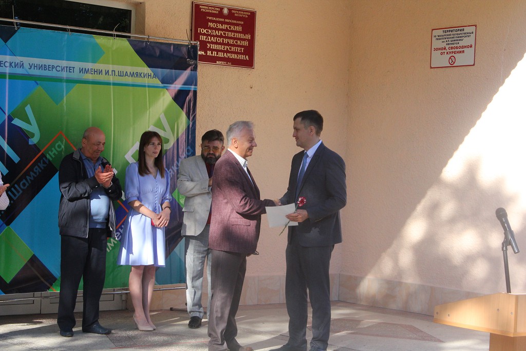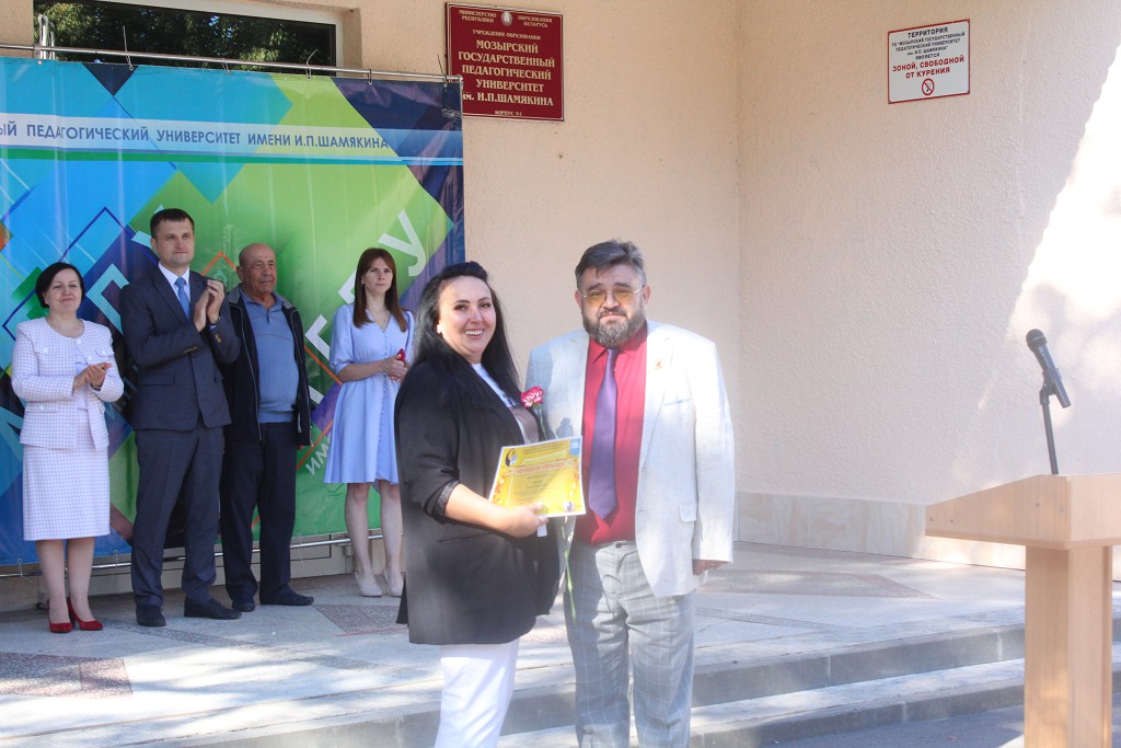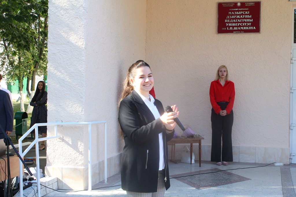 На торжественную церемонию посвящения в студенты пришли почетные гости. Поздравления и теплые пожелания прозвучали от Каленик Елены Антоновны, первого заместителя председателя Мозырского районного исполнительного комитета, от известного общественного деятеля и мецената Воскана Айказовича Чобаняна, заместителя председателя синодального отдела религиозного образования и катехизации Белорусской православной церкви Игумена Авксентия.