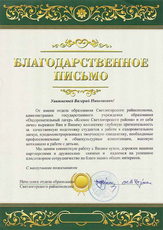 Благодарим студентов, проходивших практику в ГУО «Оздоровительный лагерь «Космос» Светлогорского района» летом 2022 года, за качественную работу и творческую инициативу в работе с детьми: