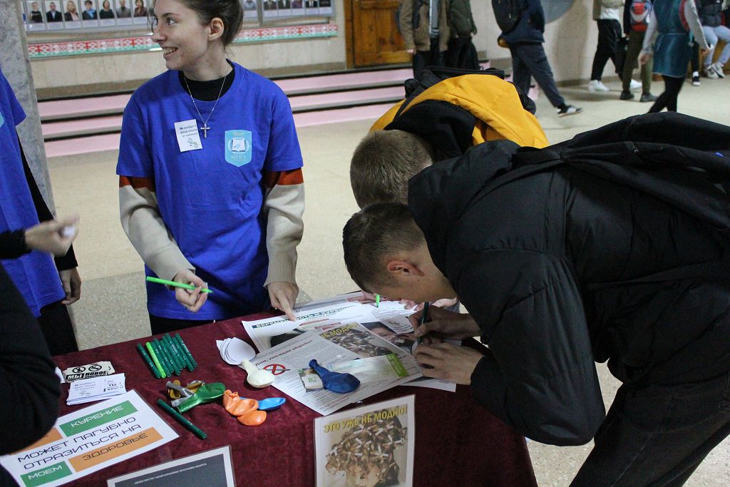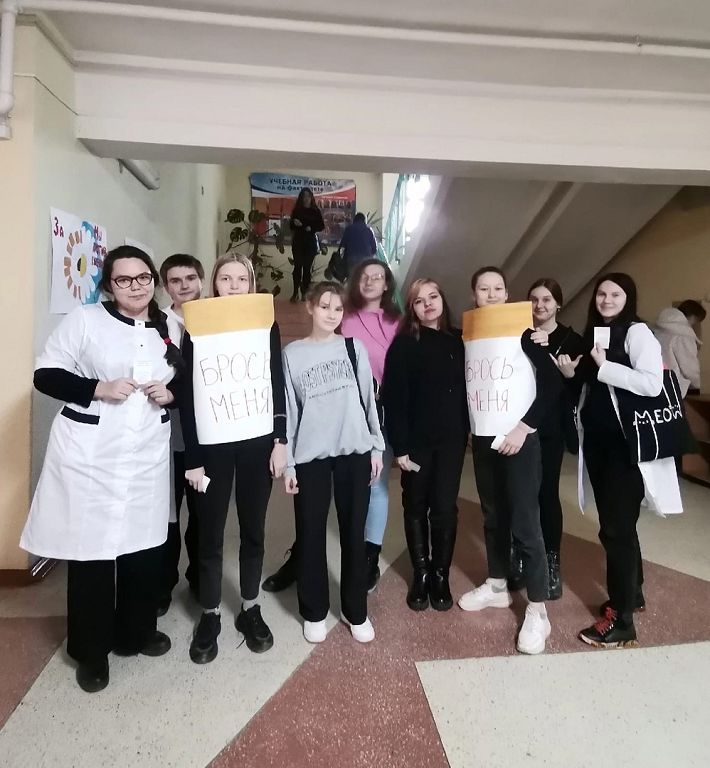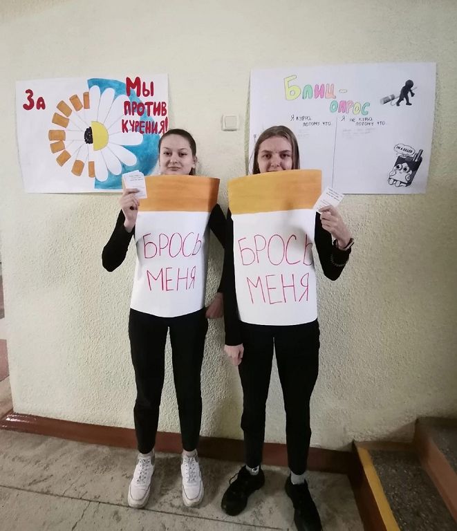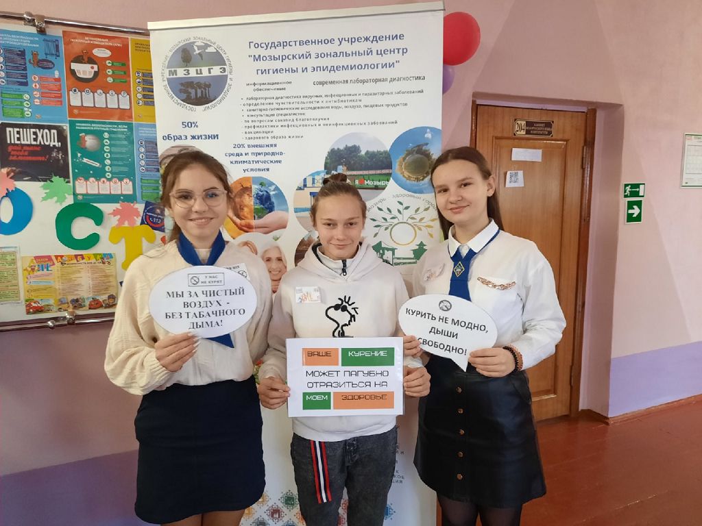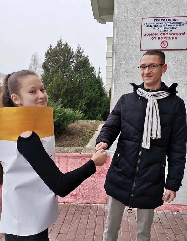 В рамках волонтёрской инициативы «Хорошее дело быть здоровым» при поддержке Мозырской РО Белорусского общества Красного Креста командой волонтёров университета на базе ГУО «Средняя школа №5 г.Мозыря» проведена акция «Курить не модно – дыши свободно!».
