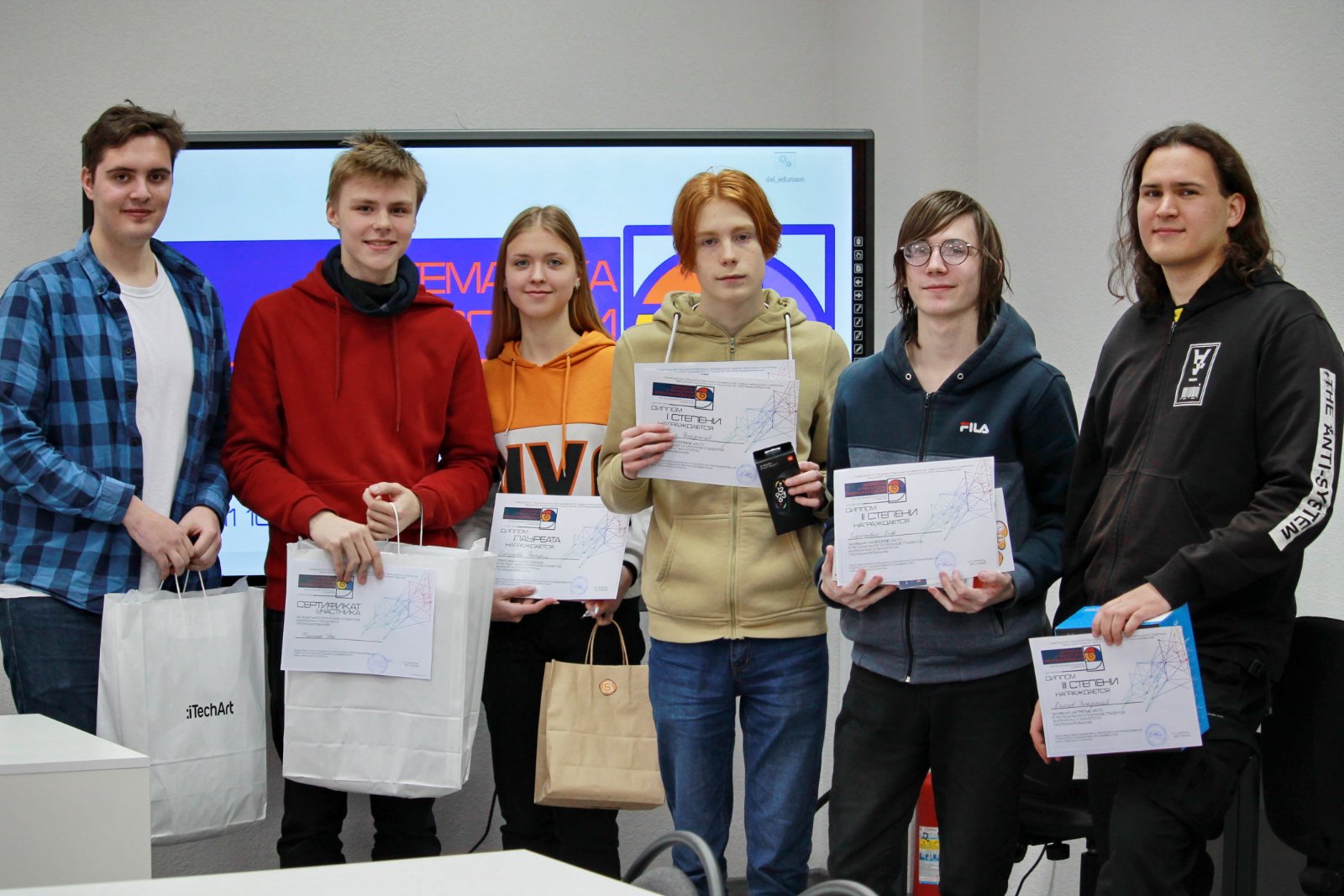 Наши студенты выступили очень достойно и расположились в середине рейтинговой таблицы, обойдя некоторых студентов, обучающихся на профильных специальностях по программированию. В рамках олимпиады был также проведен рейтинг студентов для каждого учреждения высшего образования отдельно, лучшие были награждены ценными подарками. В нашем университете лучший результат показал Радюн Никита.
