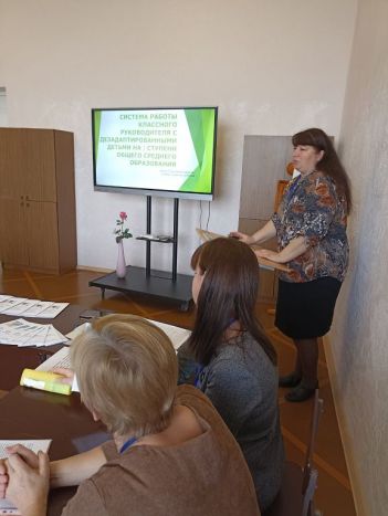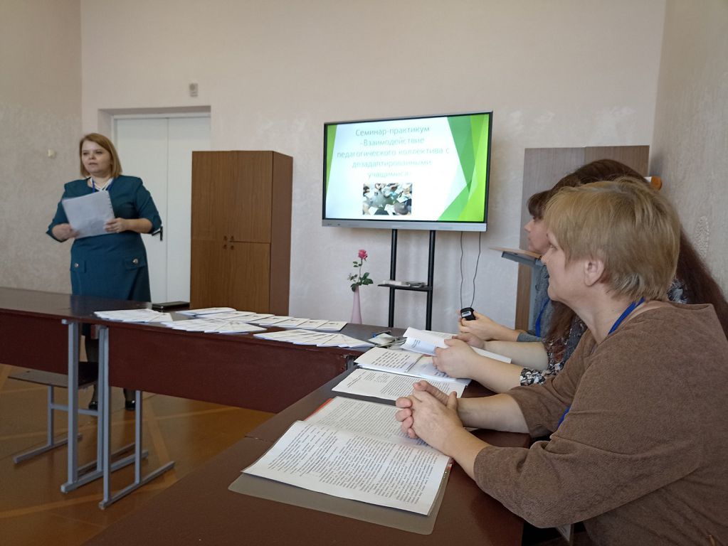 Продолжила семинар-практикум классный руководитель девятого класса Астапенко Галина Григорьевна. Она раскрыла особенности взаимодействия классного руководителя с семьями дезадаптированных подростков.