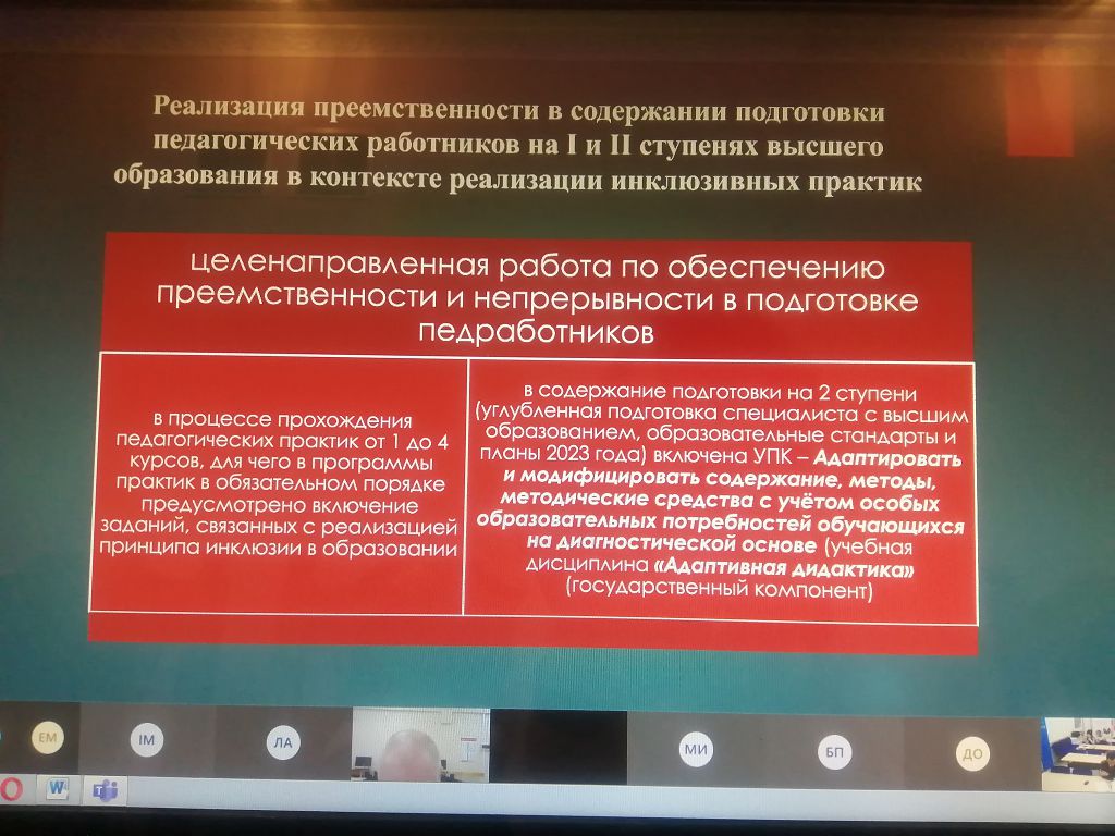 Участие в научно-методическом семинаре «Преемственность в содержании подготовки педагогических работников на I и II ступенях высшего образования в контексте реализации инклюзивных практик»