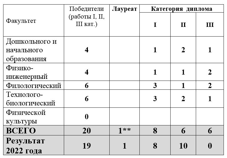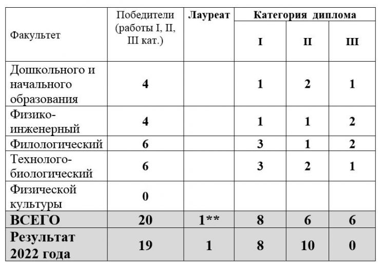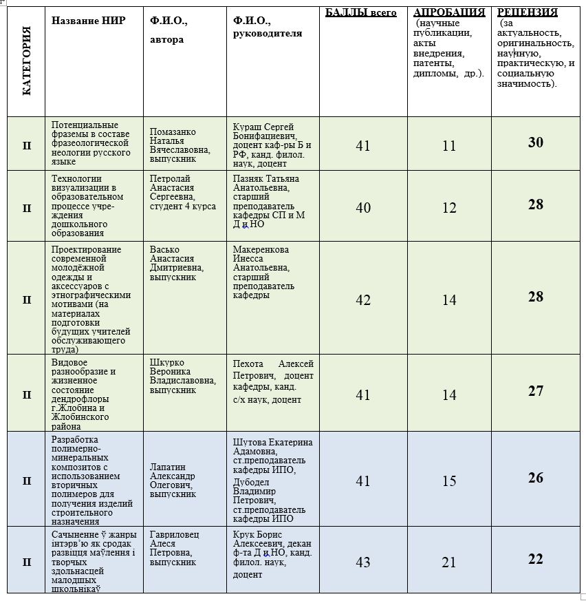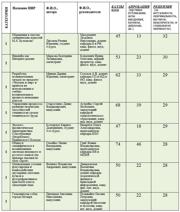 К работам I – категории отнесены научные работы, набравшие 45 и более баллов, при этом не менее 28 баллов за научную составляющую НИРС (в 2022 году достаточно было набрать 40 баллов).
