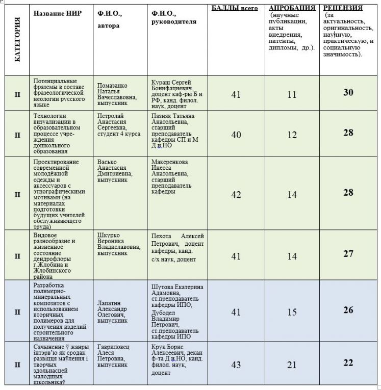 К работам II – категории относятся научные работы, набравшие 40–44 баллов, при этом не менее 20 баллов за научную составляющую НИРС (в 2022 году достаточно было набрать 33–39 баллов).