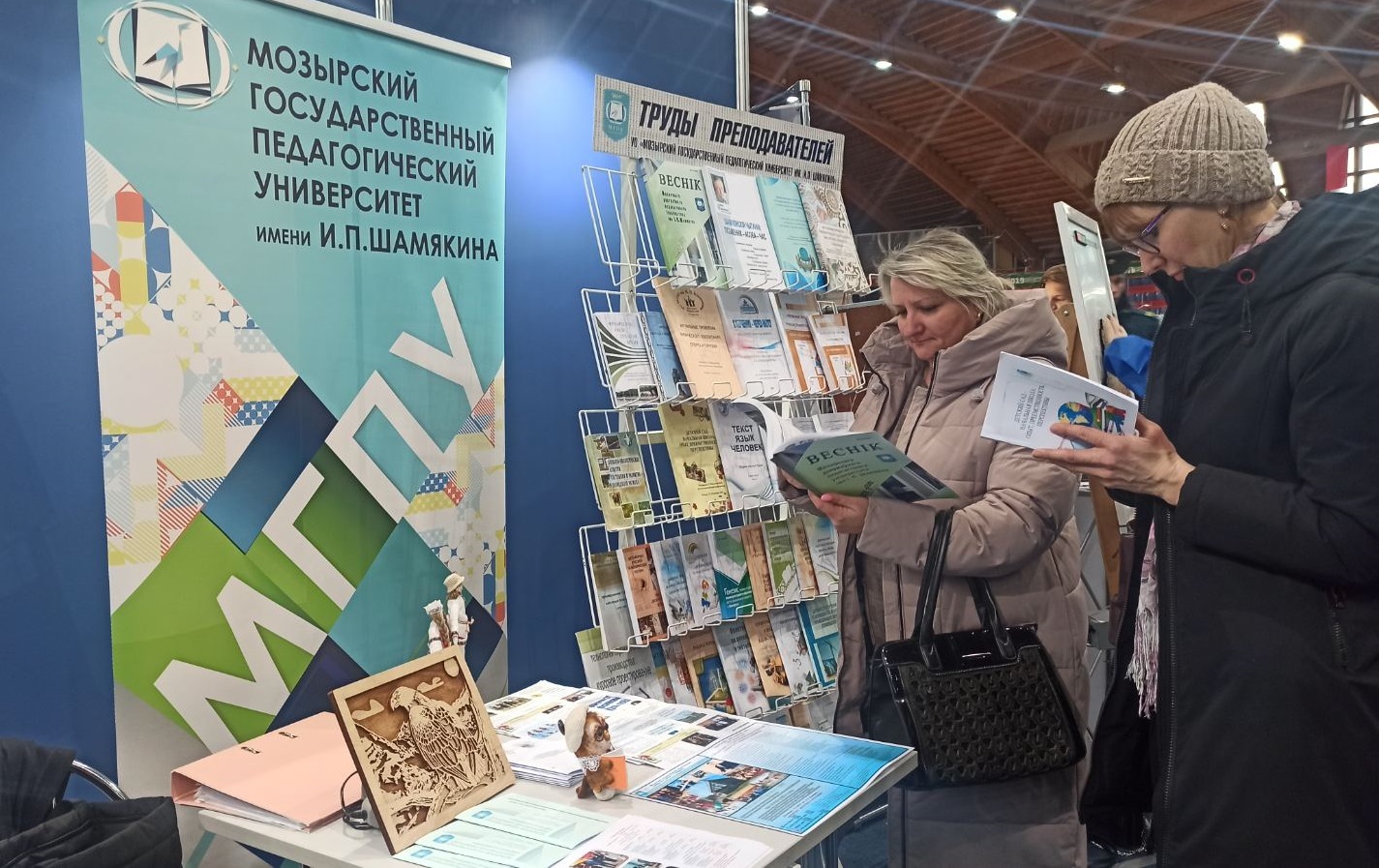 УО «Мозырский государственный педагогический университет им. И. П. Шамякина» представляла библиотека с выставкой «Труды преподавателей», включающей научные публикации сотрудников в журнале «Веснік МДПУ імя І. П. Шамякіна», материалы международных научных конференций, монографии, учебные пособия за последние несколько лет. Сотрудники библиотеки грамотно, ярко и интересно представили информацию о научных исследованиях и разработках преподавателей университета, которые вызвали интерес у педагогов, воспитателей учреждений дошкольного образования и других посетителей мероприятия. За четыре дня работы выставки сотни тысяч любителей книги имели возможность найти и почерпнуть для себя полезную информацию.
