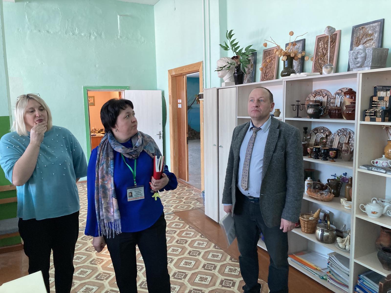 Администрация колледжа в лице Бешкаревой Натальи Михайловны, заместителя директора по УПР с большим вниманием отнеслась к нашим преподавателям и показала им много интересных уголков своего учебного заведения: выставочные залы «Спадчына» и «Наше наследие», выставочный зал декоративно-прикладного искусства, выставочный зал советского периода и др.
