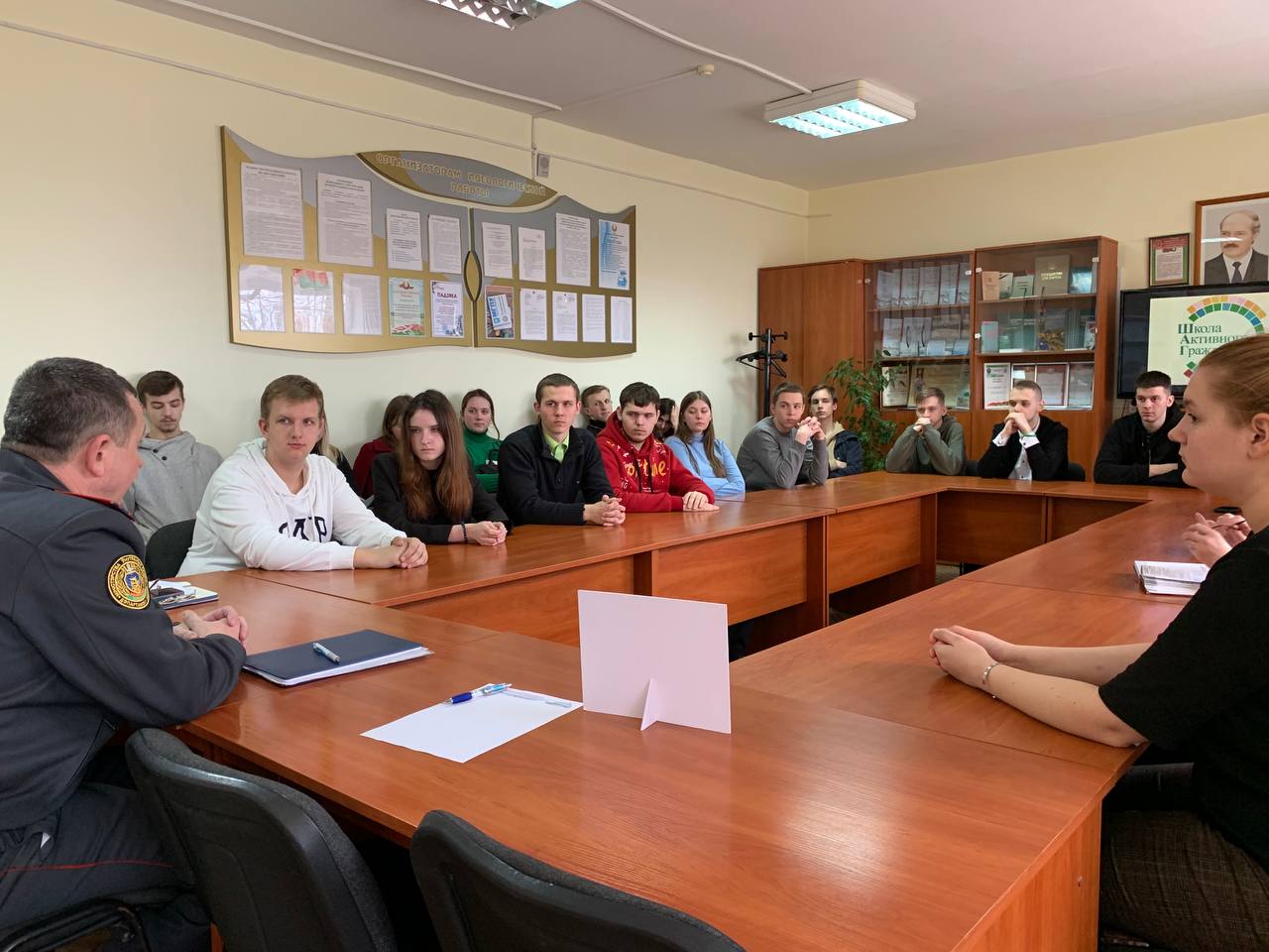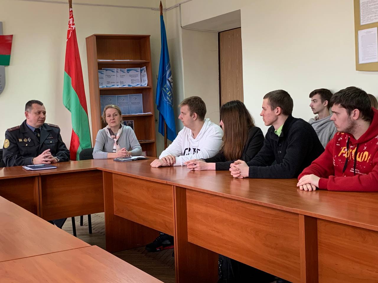 В процессе беседы были обсуждены актуальные вопросы личной безопасности, роли технических средств по защите личного и государственного имущества и др. В завершении встречи Владимир Станиславович пригласил студентов посетить Мозырский отдел Департамента охраны МВД и изнутри посмотреть на работу профессионалов.