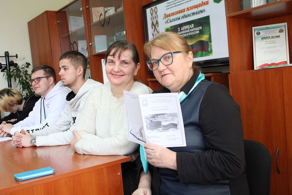 В роли модератора и спикера выступила М.М. Щербин, заведующий кафедрой истории и обществоведческих дисциплин, кандидат педагогических наук, доцент, которая ознакомила присутствующих с основными целями создания Союзного государства, обозначила историческую и духовность общность двух братских народов.