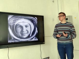 Студенты подготовили красочную презентацию с видеоматериалами о вкладе Беларуси в мировую космическую историю.