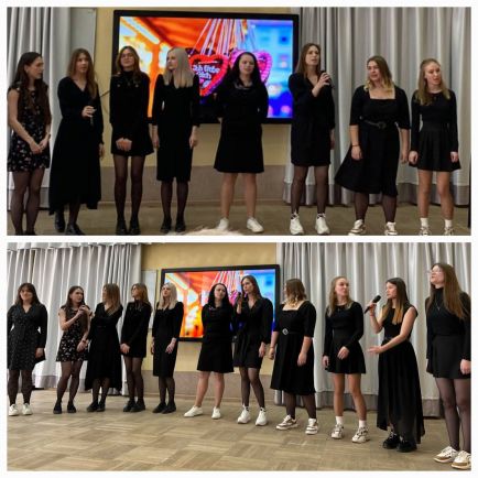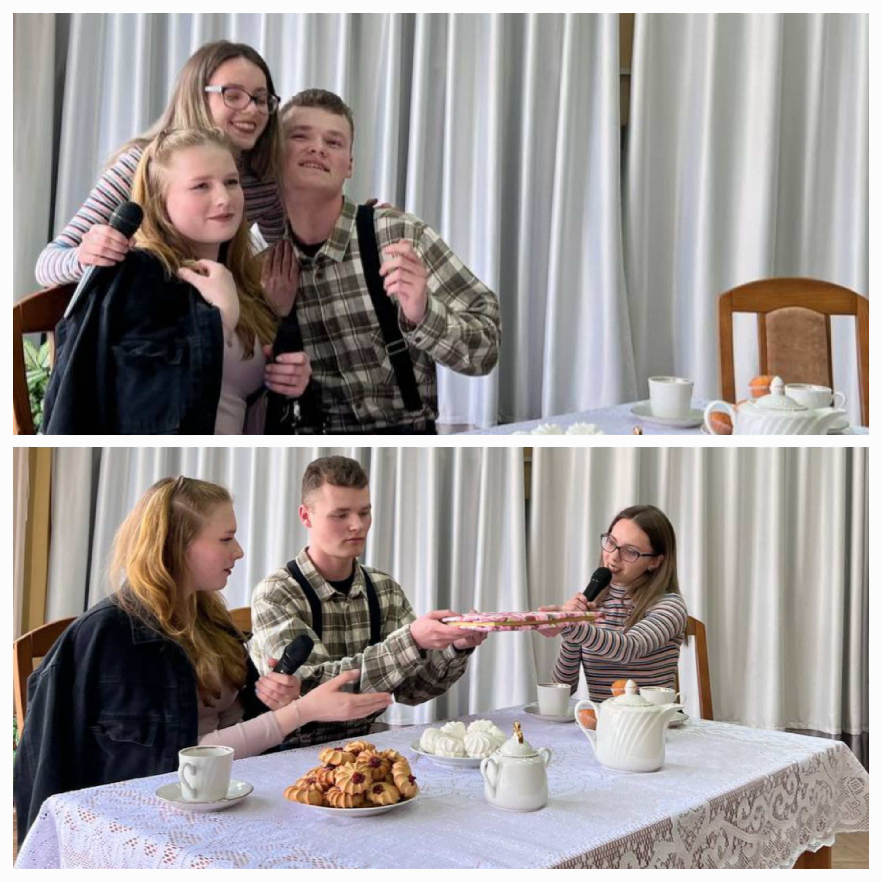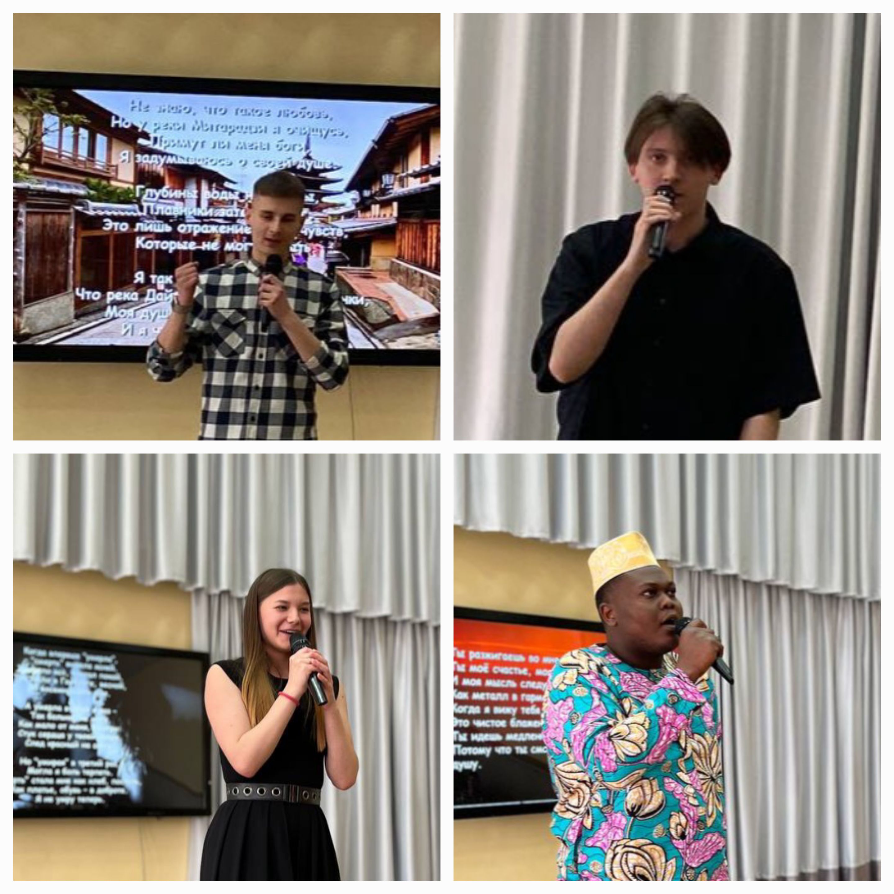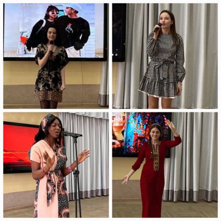 Талантливые ведущие (Мельник А. и Ангел А.) сыграли роль милой пары, праздновавшей 25-летие совместной жизни вместе с дочерью-студенткой (Воронина А.) и вспоминали лучшие романтические события, связанные с посещением разных стран мира. Ожившие приятные воспоминания заговорили буквально на всех языках мира – студенты, мастерски перевоплотившись в образы друзей семьи, посвящали стихотворения о любви нашей паре и дарили музыкальные подарки. Так, все присутствующие могли оценить утонченность японской поэзии (Блохин Н.), изящность корейской (Довганинец А.), самобытность туркменской (Редькова А.), душевность немецкой (Капица Н.), изысканность французской (Аплоган Анж Елонис), элегантность английской лирики (автор и исполнитель Ефименко Е.).