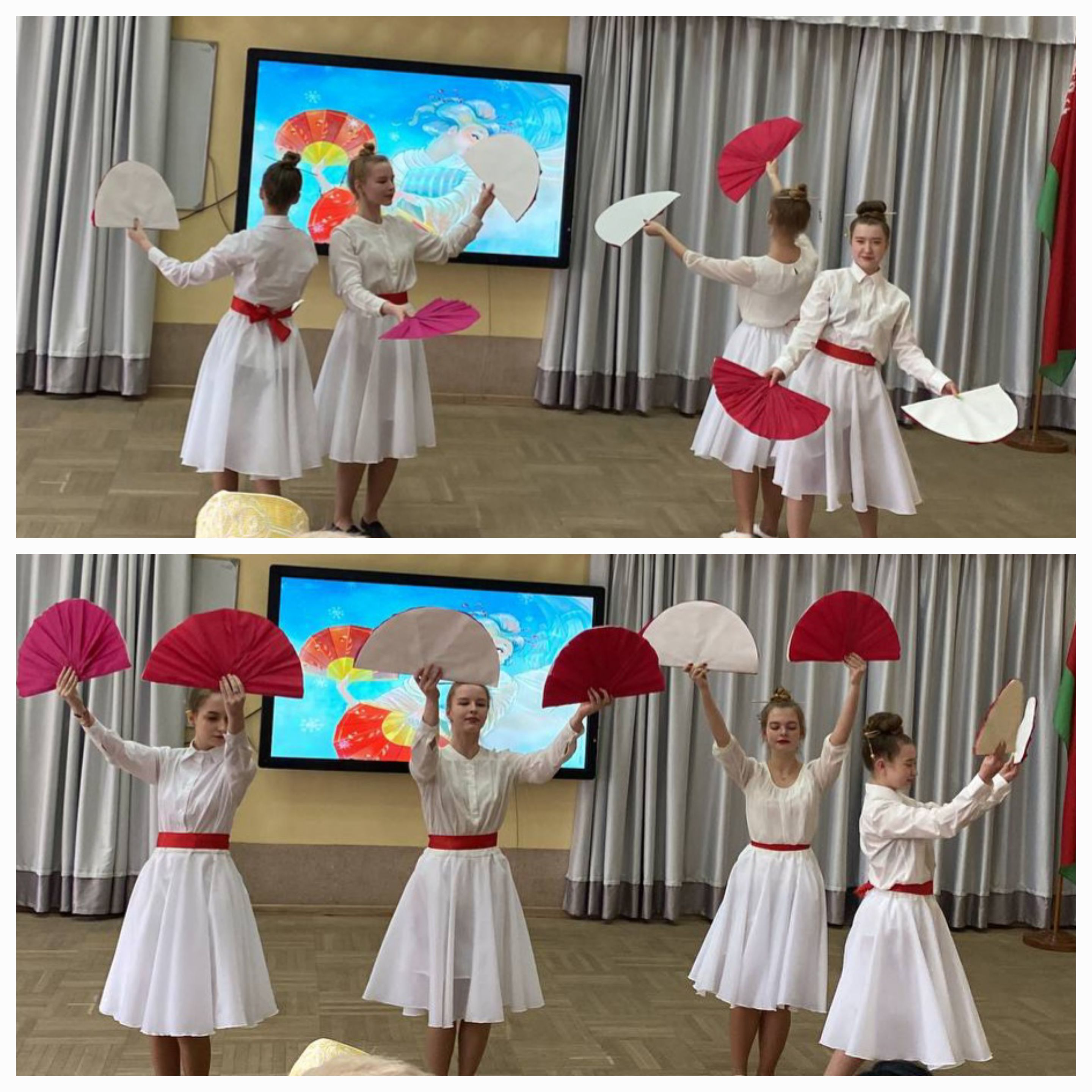 Зрителям удалось окунуться в азиатский колорит Китая и вдохновиться сольной импровизацией на фортепиано магистранта из Поднебесной Цуй Кефена. Слушательница подготовительных курсов Касинди Асумани Доркас из Конго порадовала невероятным перевоплощением песни «Король лев» на французском языке. Заводной национальный танец А. Редьковой передал атмосферу жаркого Туркменистана. Побывать в Германии удалось с песней «Nie besser als jetzt» в исполнении Расуловой Л., Соколовской К., Кошкиной Е., Кудласевич М., Шкудун Д., Пилипенко А., Саченок А., Шмак В., Левковец А., Камай Е., Капица Н. Зрители смогли познакомится и с танцевальным искусством гейш Японии – танец с веерами был продемонстрирован Шевчук К., Грамович П., Кашевич Ю., Шевель А. Консервативная Англия подарила вдохновляющую песню в исполнении Эннс Л., а Южная Корея ворвалась на сцену с зажигательным «K-pop» танцем, который представили Цапова А., Релькова А., Батура В., Мельник А., Миланич А. Конечно, самые счастливые моменты всегда связаны с домом, потому и закончили ребята свое выступление песней на белорусском языке.