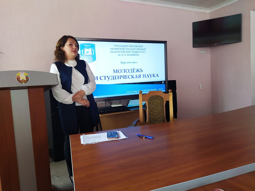 Опытом выполнения научно-исследовательской работы в рамках грантов Министерства образования Республики Беларусь поделились также студенты 4 курса факультета дошкольного и начального образования А. Назаренко и К. Рожко. С научными достижениями студенческих научно-исследовательских лабораторий филологического факультета присутствующих ознакомила студентка 3 курса М. Пономарёва.