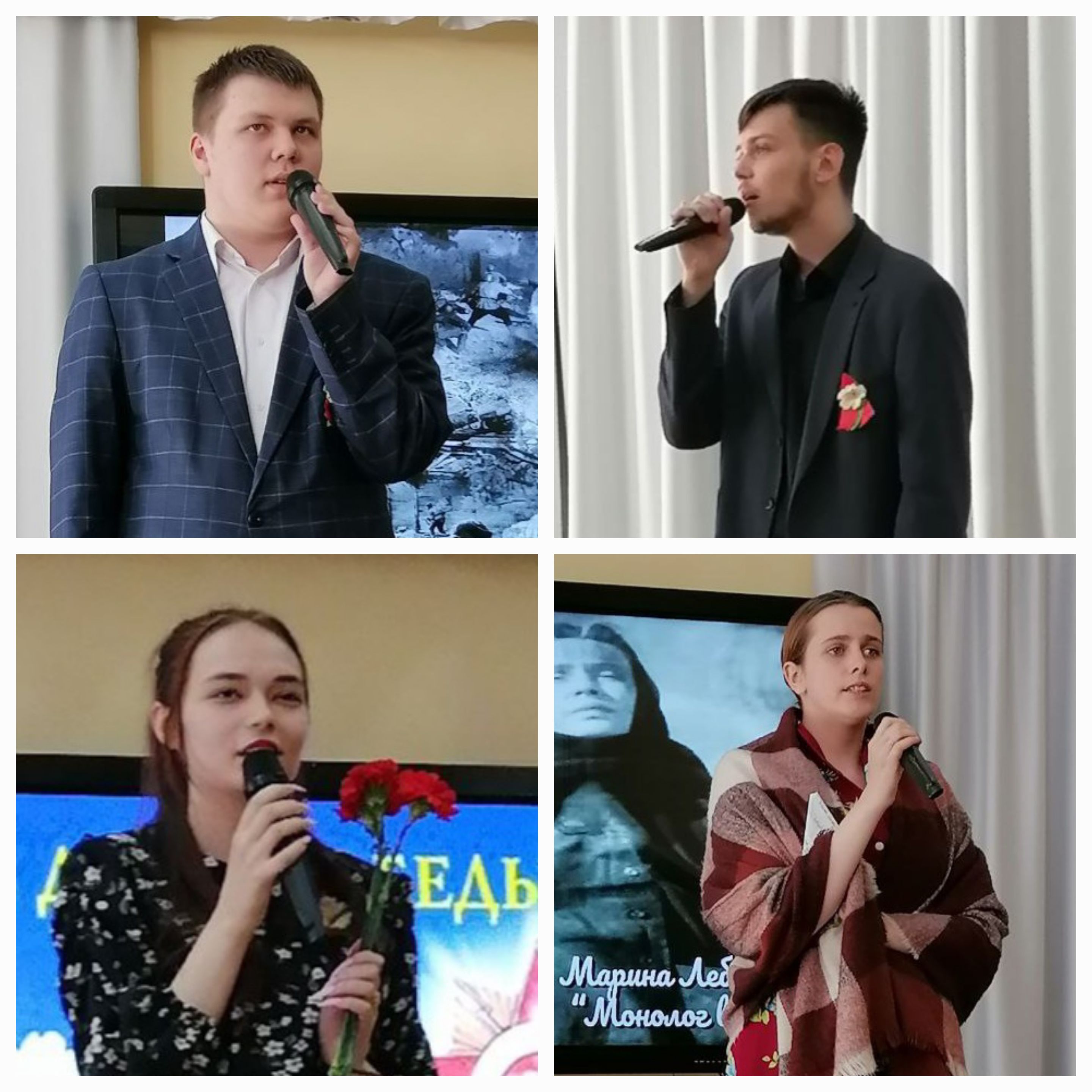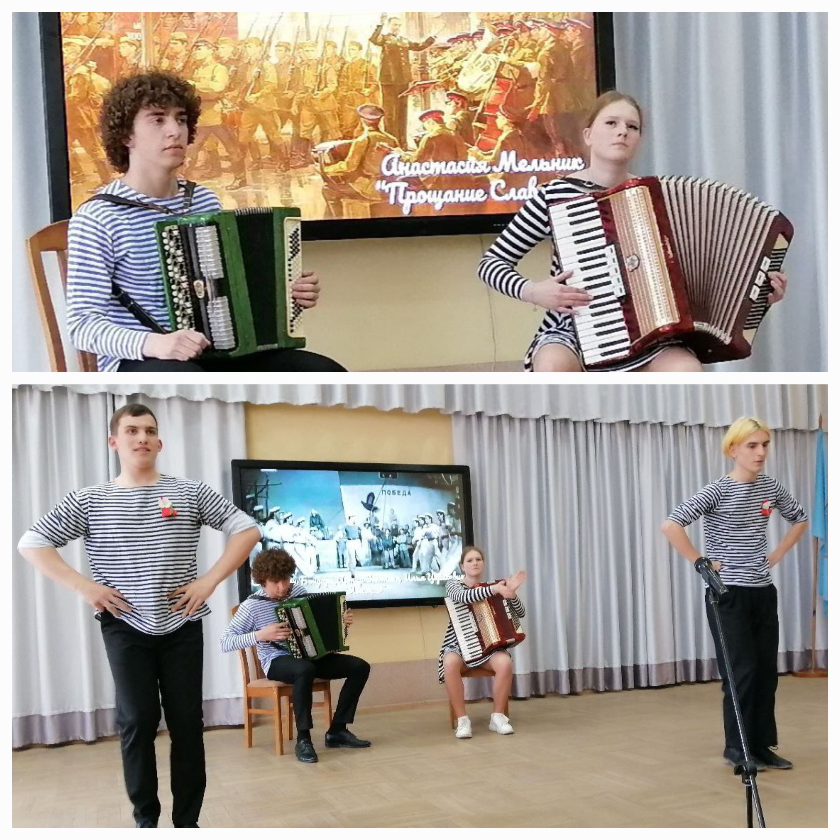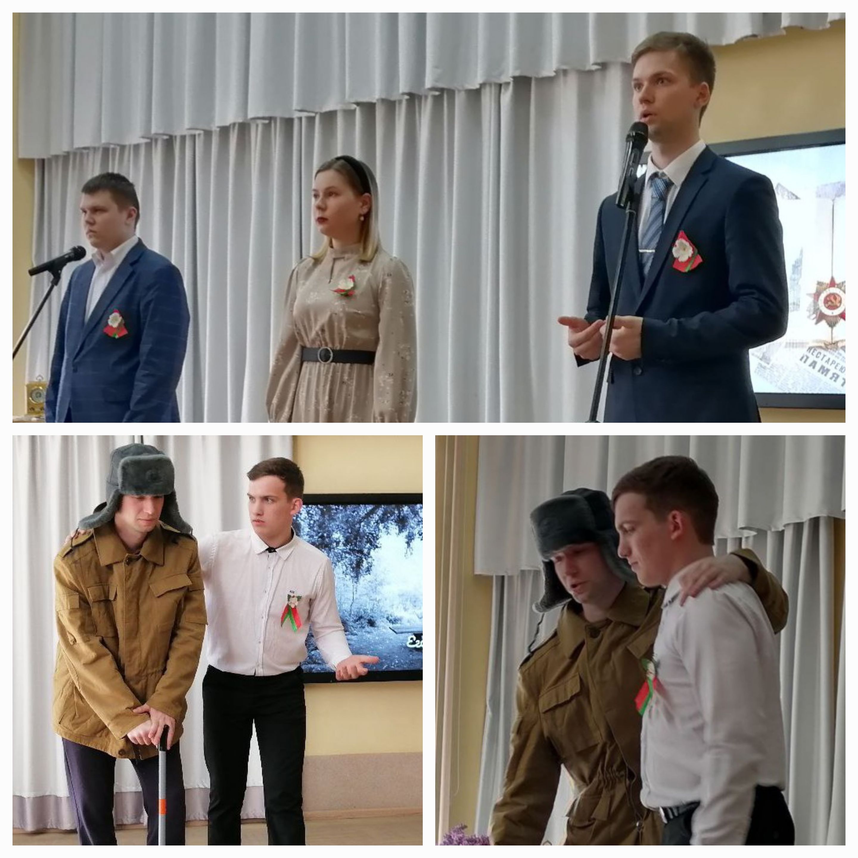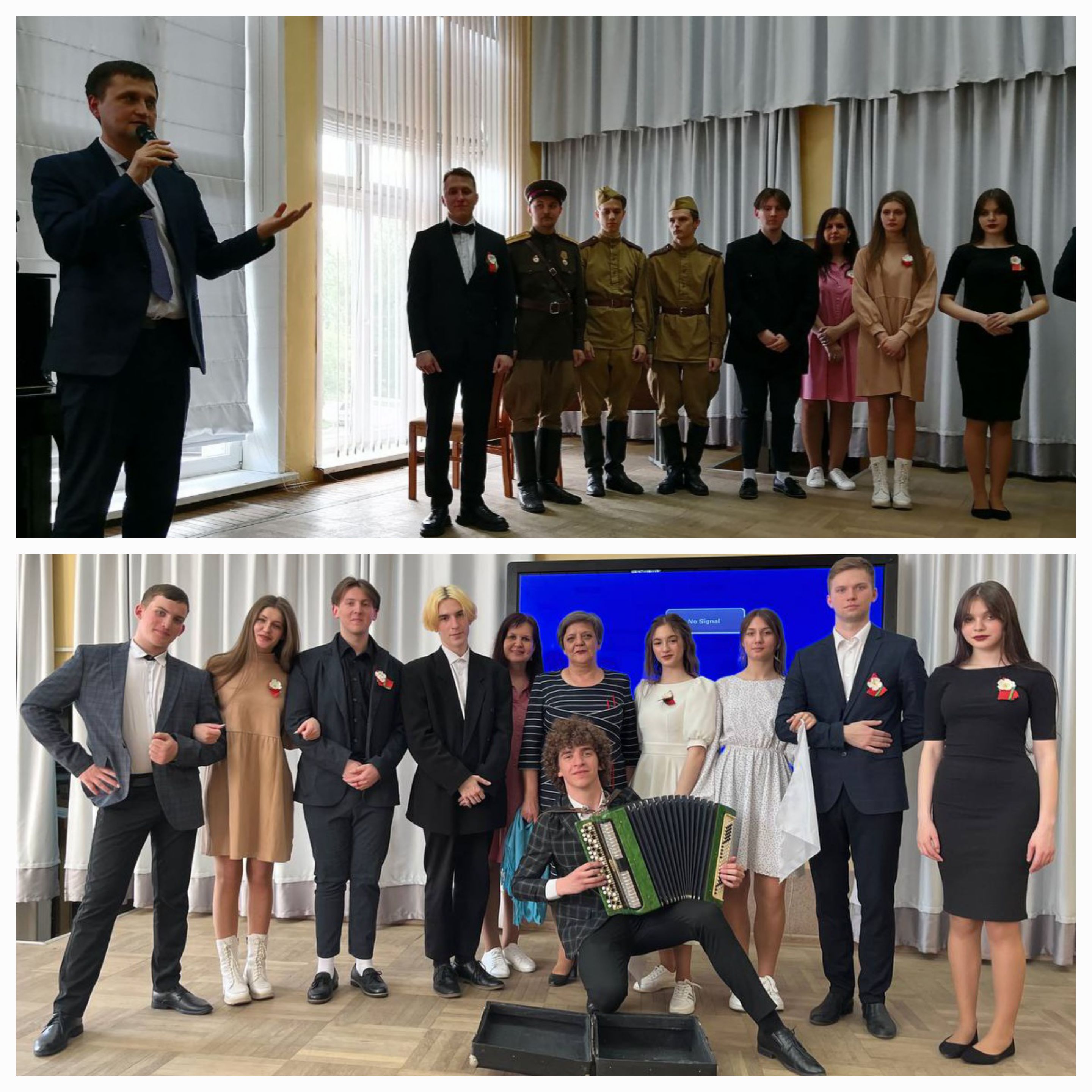 В концерте звучали музыкальные произведения в память о трагических событиях военных лет: проникновенная баллада Карабинович К., искренняя элегия Грищенко А., лирический баритон Перескокова И., а также трогательное выступление ученицы Мозырского государственного областного лицея Смык Ю. сольно и в дуэте с выпускником нашего вуза, а ныне учителем английского языка Мозырского государственного лицея Ковалёвым Я. О. Свой музыкальный талант ребята проявили также при виртуозном исполнении марша «Прощание Славянки» на аккордеоне (Мельник А.), композиции «Яблочко» на баяне (Бондарь С.) и соответствующего танца (Злотник А. и Царикевич И.). Закончилось представление на мажорной ноте вокальным исполнением «Майского вальса» Ковалёвым Я.О. в сопровождении хореографической постановки (Струк М., Юхневич М., Бондарь С., Злотник А., Бородавко К., Шоба Е., Дулева А., Саченок А.).
