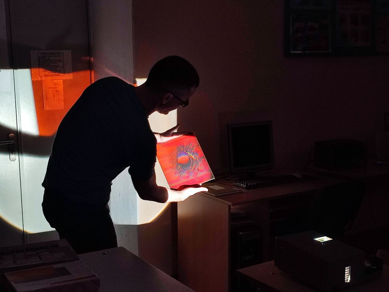 Знакомство с научной лабораторией когерентной оптики и голографии Подробности Опубликовано 20.06.2023 09:42 Студенты младших курсов факультета увлеклись настолько, что записались в кружок по когерентной оптике и голографии.