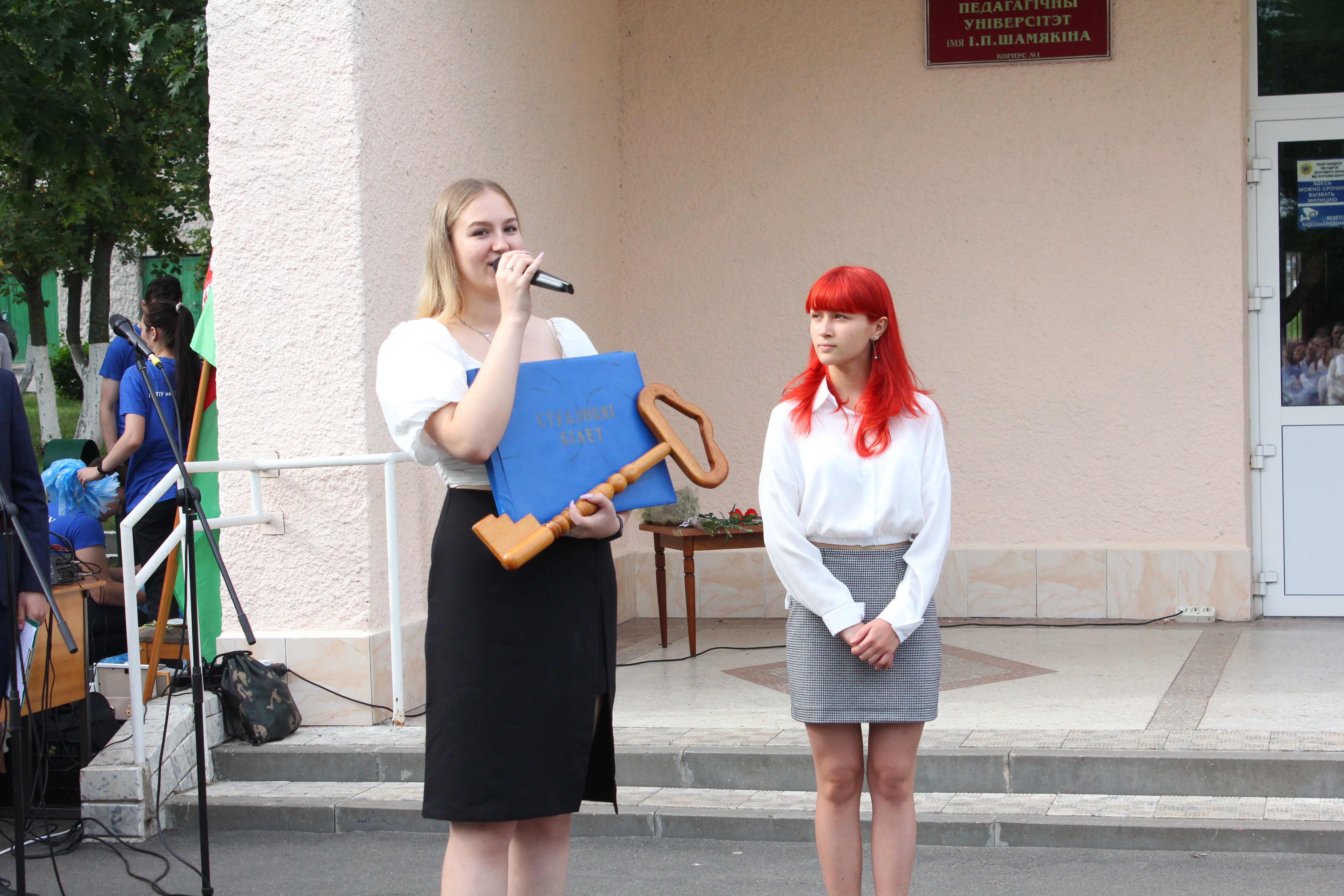 По традиции первокурсникам были вручены символы студенческой жизни: Ключ знаний и Студенческий билет. Студентка факультета дошкольного и начального образования Ксения Солодовникова, набравшая рекордные 343 балла по итогам приемной кампании, приняла эти символы насыщенной студенческой жизни из рук выпускницы университета, председателя студенческого Совета Маргариты Забелиной.
