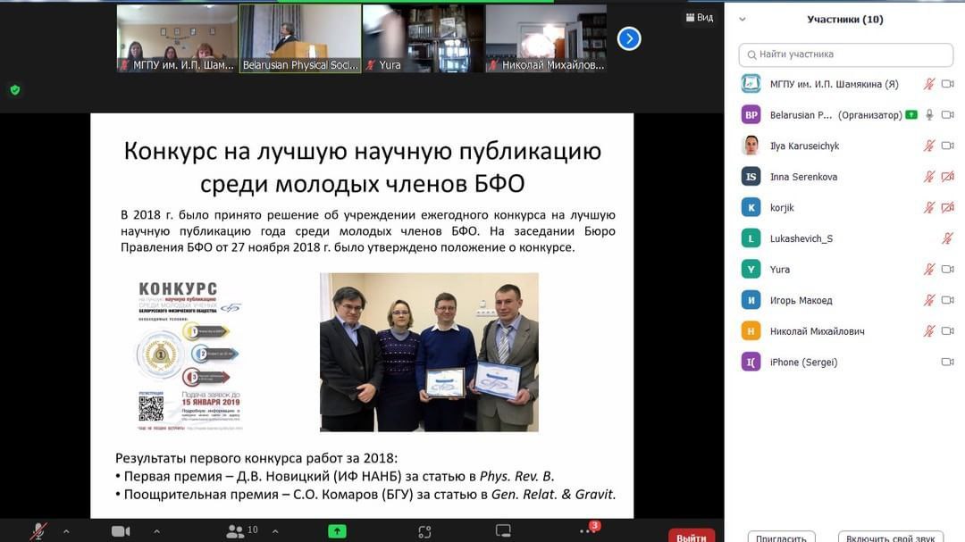 В режиме онлайн в работе съезда участвовали три делегата от нашего университета: заведующий кафедрой теоретической физики и прикладной информатики Овсиюк Е.М., доцент Давыдовская В.В., аспирант Блоцкая Д.С.
