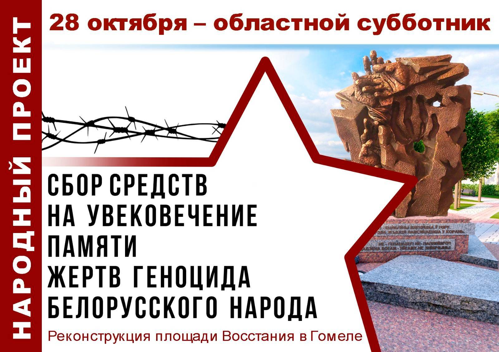 Участниками трудовых десантов традиционно станут представители власти, депутатского корпуса, коллективов предприятий, организаций, учреждений, общественных объединений, молодежь, небезразличные к судьбе и облику родного края жители региона. Заработанные на субботнике средства направят на увековечение памяти жертв геноцида белорусского народа – финансирование работ по реконструкции площади Восстания в Гомеле.