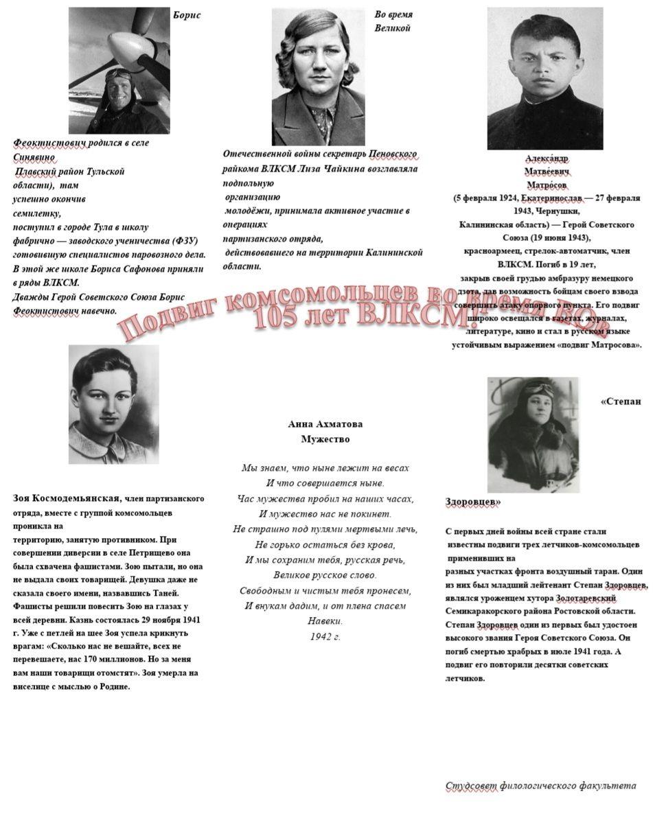 Студсовет факультета совместно с активом 2 группы, 2 курса подготовили газету «Подвиг комсомольцев во время Великой Отечественной войны: 105-летие ВЛКСМ»