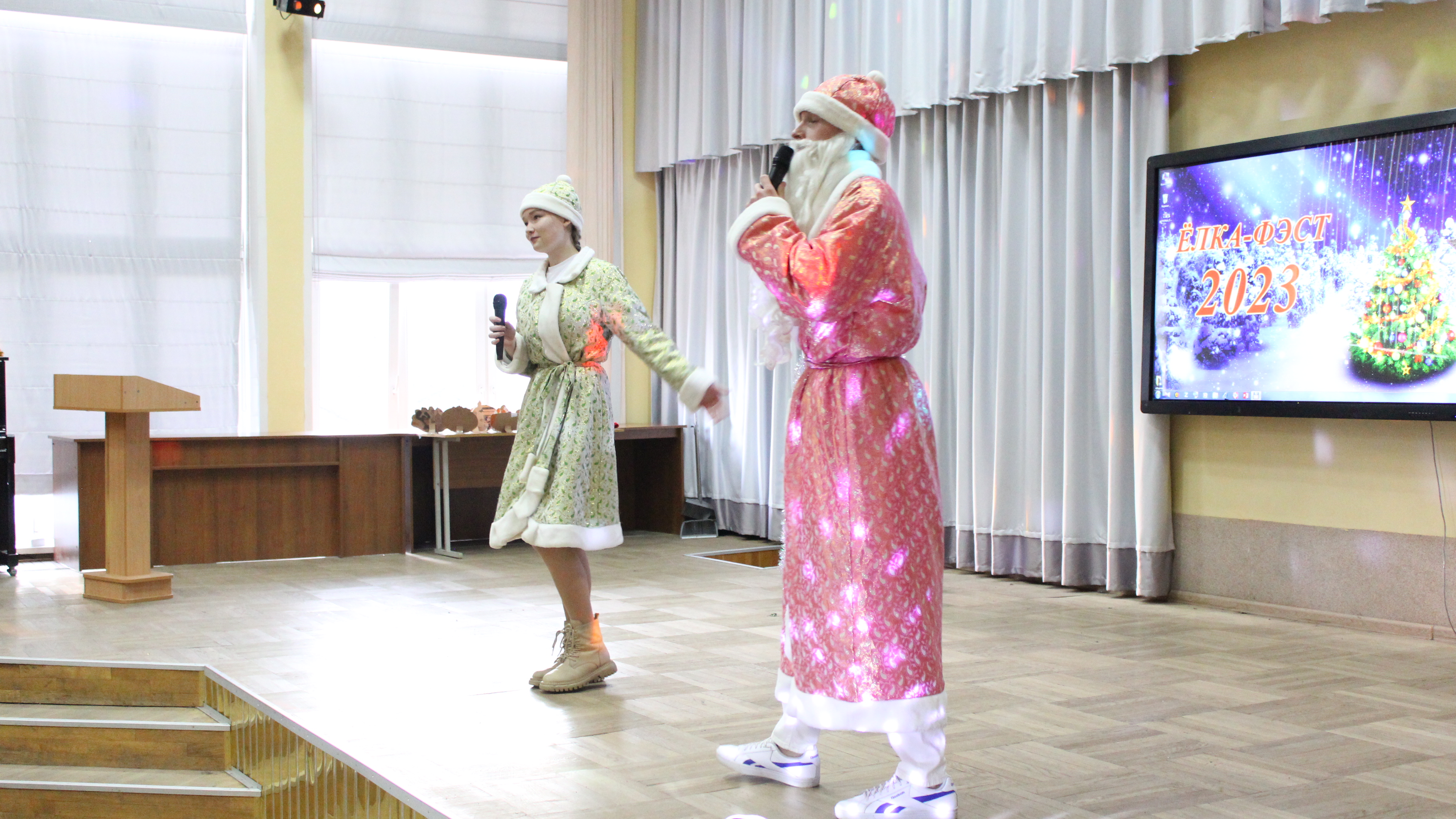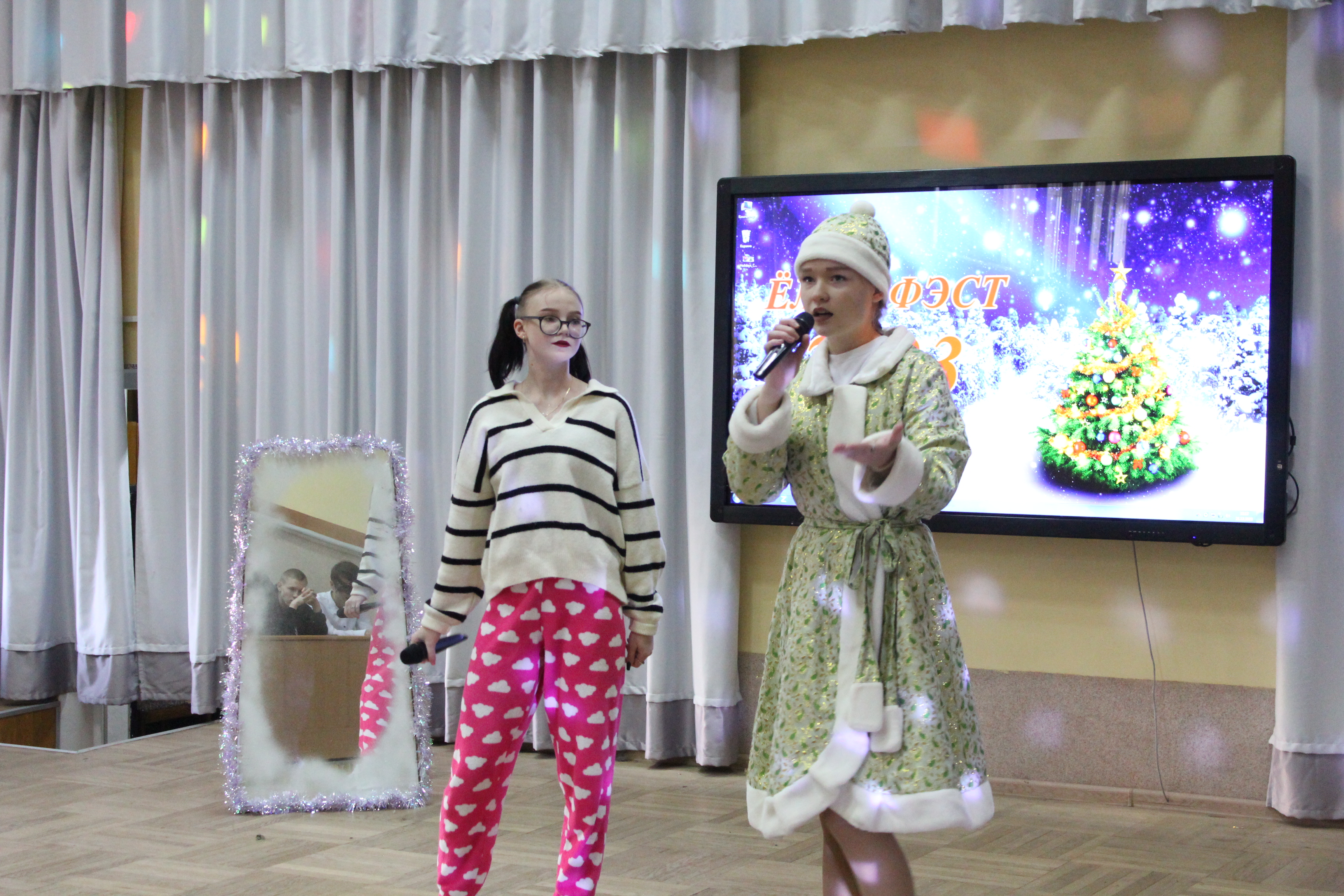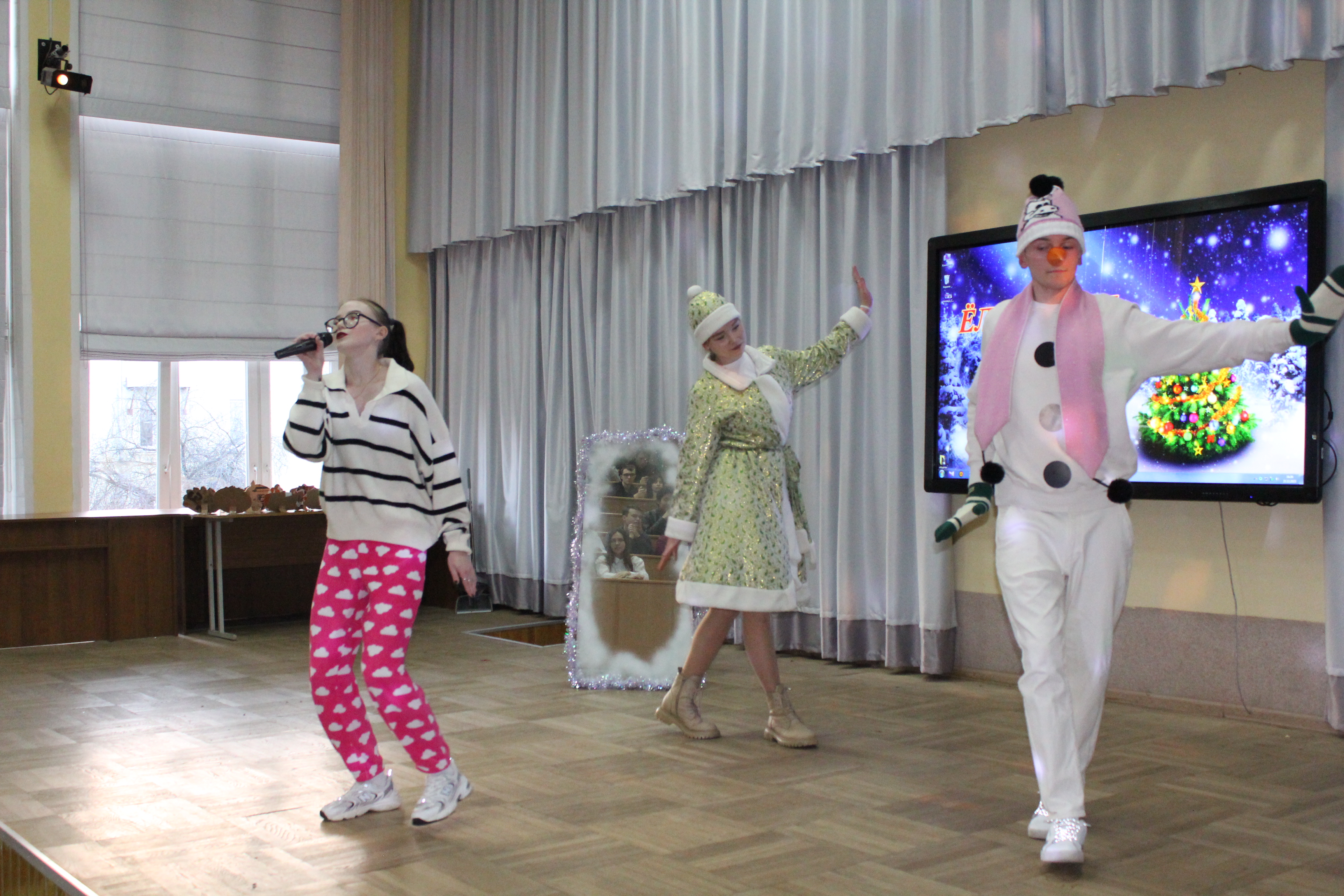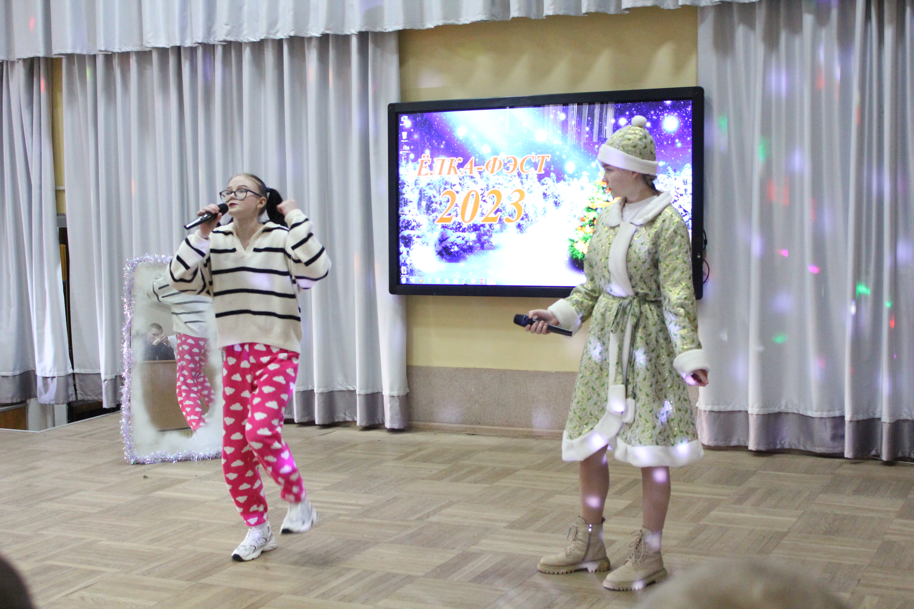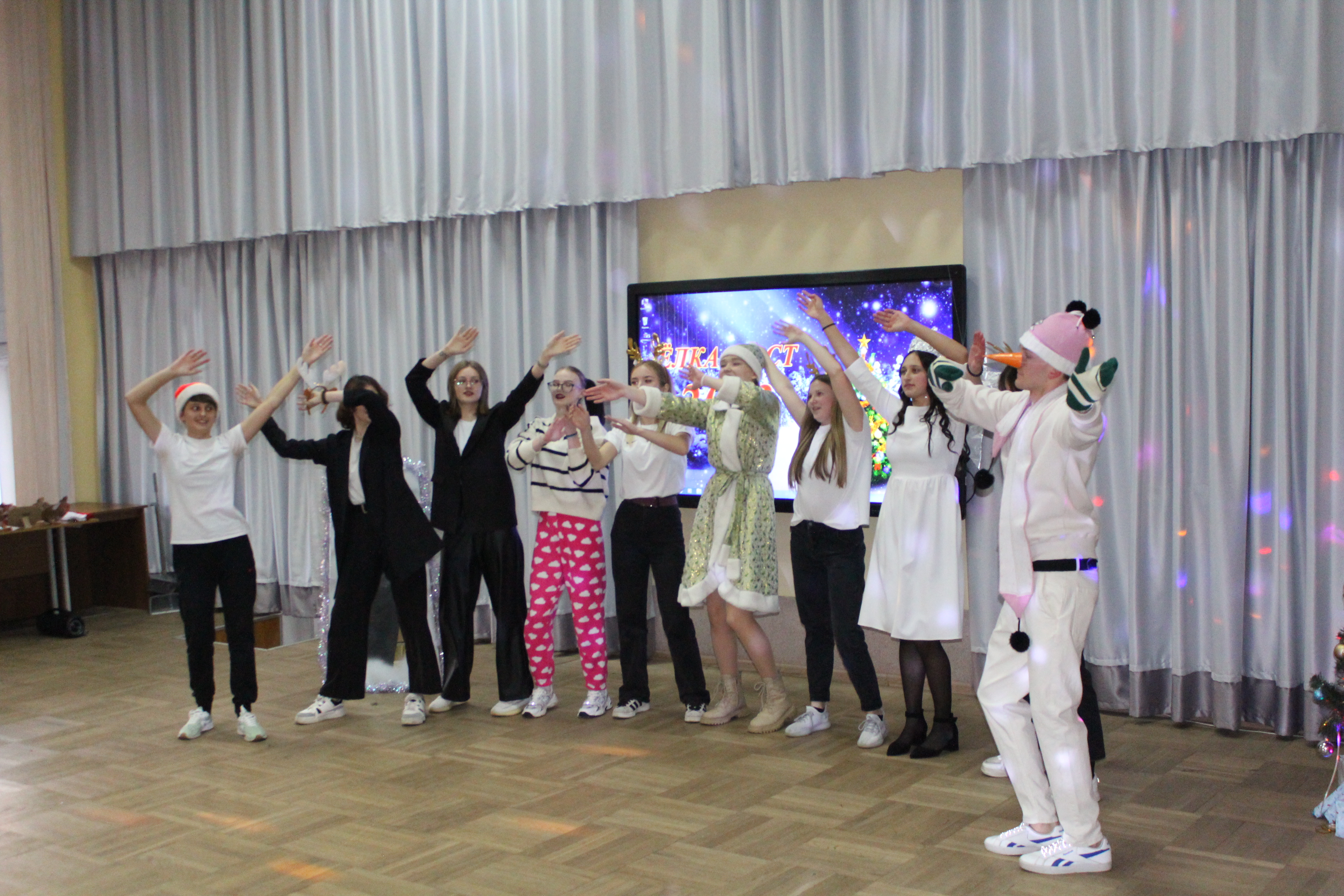 1 – е место разделили между собой команды общежитий №1 и №2, а 2 – место досталось общежитию №3. В номинациях «Лучший Дед Мороз», «Лучшая Снегурочка» были представители общежития №1 – Егор Салбуков и Алина Чиженок. Титул «Королевы» достался председателю студенческого совета общежития №2 Анне Савицкой, а в номинации «Лучший танцор» победил Алексей Ангел с общежития №3.