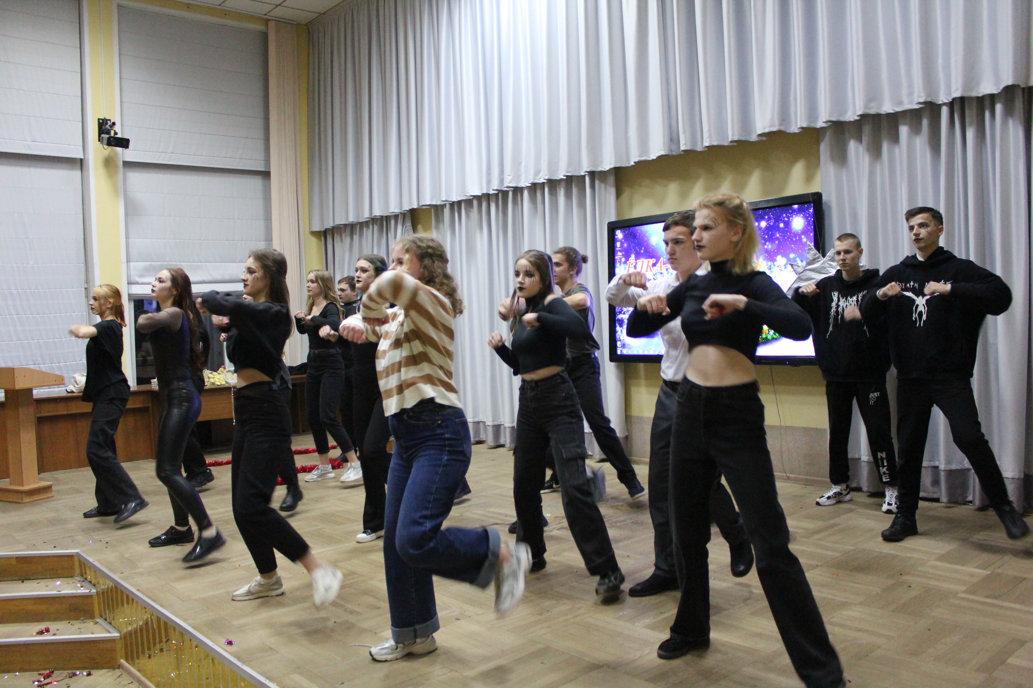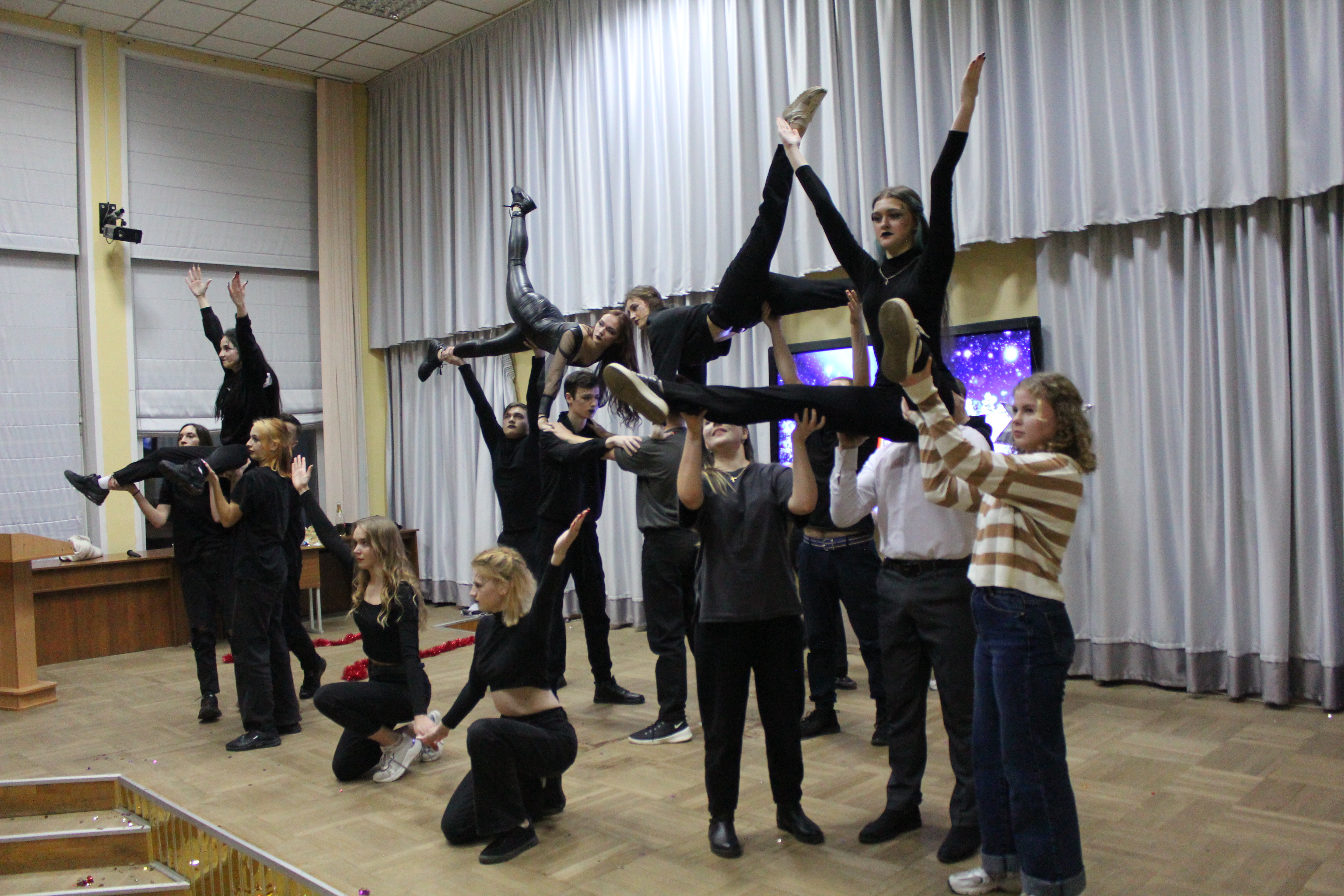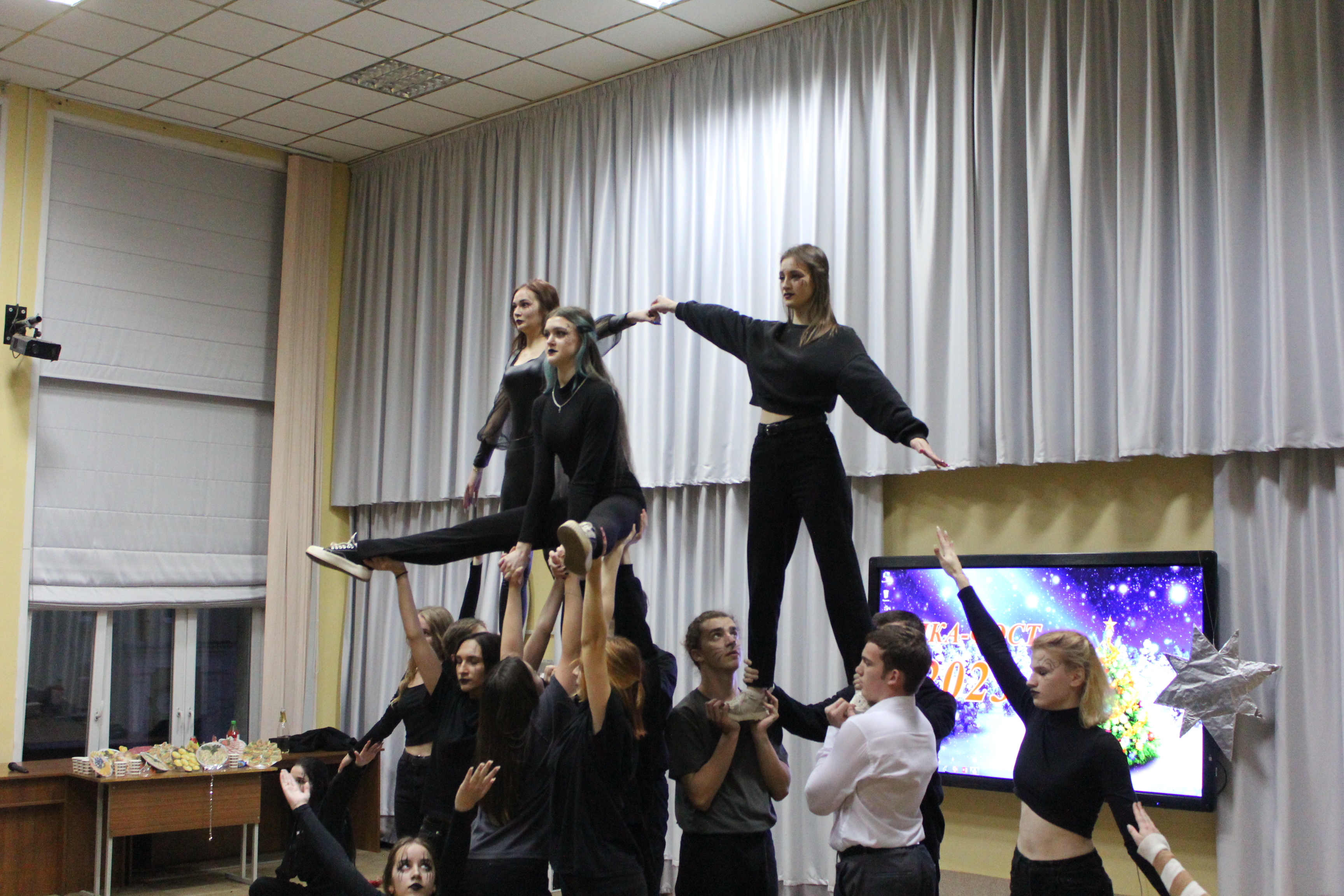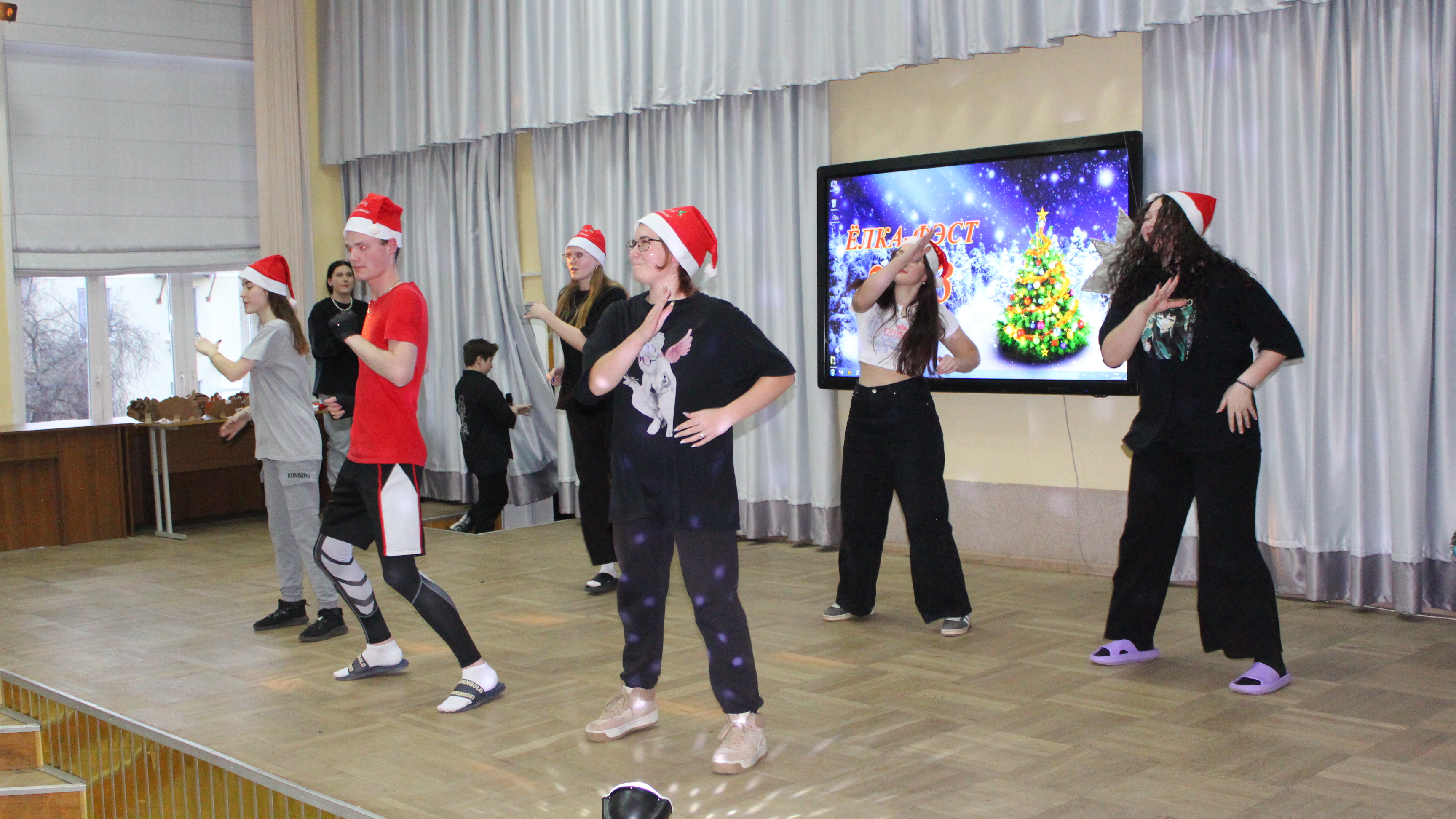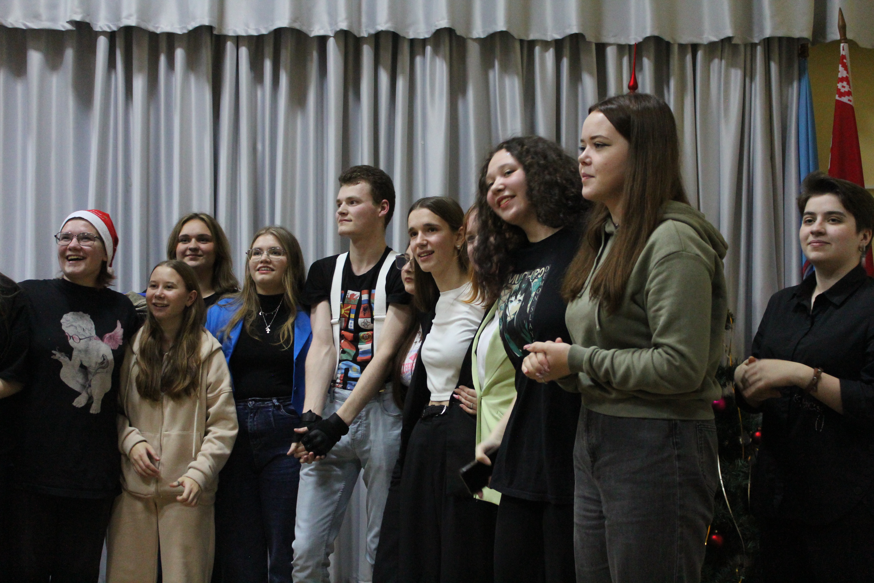1 – е место разделили между собой команды общежитий №1 и №2, а 2 – место досталось общежитию №3. В номинациях «Лучший Дед Мороз», «Лучшая Снегурочка» были представители общежития №1 – Егор Салбуков и Алина Чиженок. Титул «Королевы» достался председателю студенческого совета общежития №2 Анне Савицкой, а в номинации «Лучший танцор» победил Алексей Ангел с общежития №3.