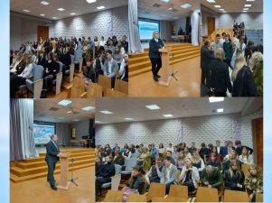 Декан факультета Тихонова Е.В. подробно разъяснила условия поступления, обратив внимание на новации приемной камании 2024 года, рассказала об условиях обучения и проживания студентов. Сконцентрировала внимание присутствующих на льготных условиях для поступления в наш университет выпускников педагогических классов, а также на возможностях поступления и обучения по договору о целевой подготовке.