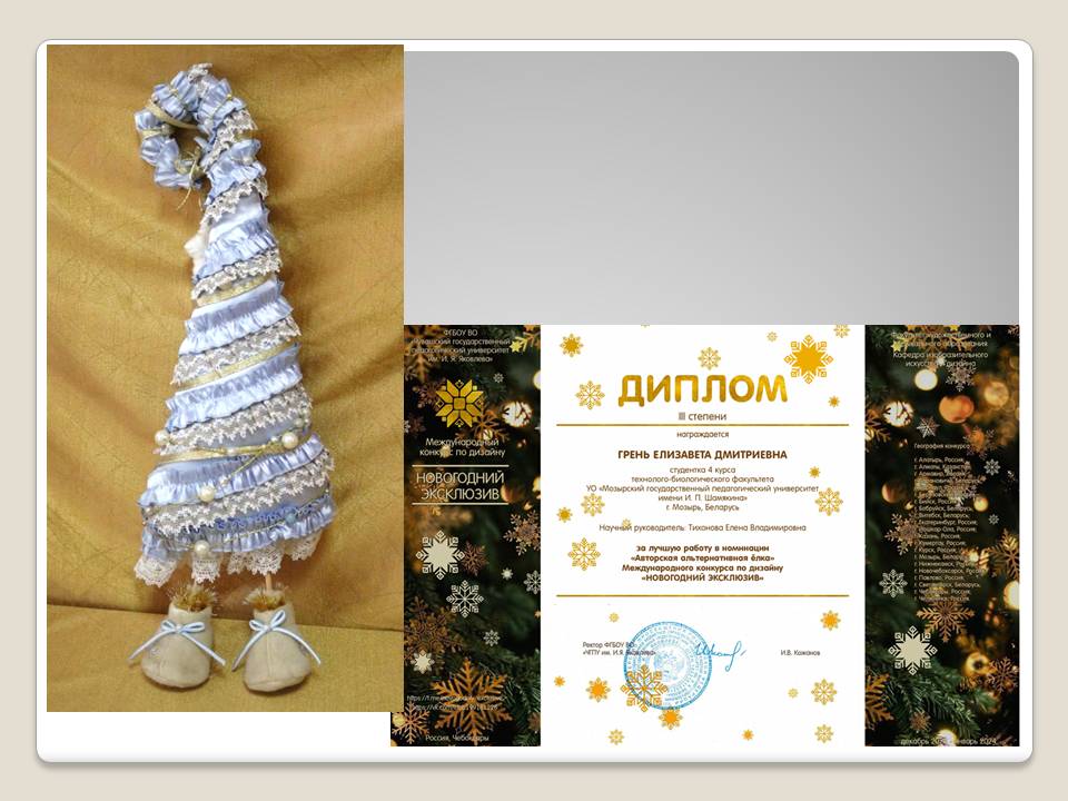 Грень Елизавета, студентка 4 курса, в номинации «Авторская альтернативная ёлка» (руководитель: Е.В.Тихонова);