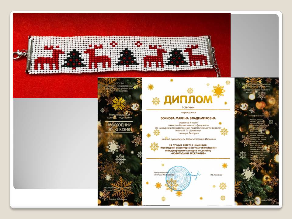 Бочкова Марина, студентка 4 курса, в номинации «Новогодний аксессуар к костюму (бижутерия)» (руководитель: С.И.Карась);