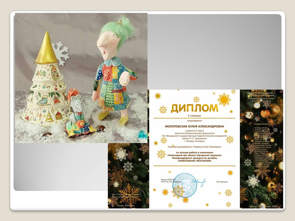 Молотовская Юлия, студентка 4 курса, в номинации «Новогодний арт-объект (авторская игрушка)» (руководитель: А.А.Клевжиц).