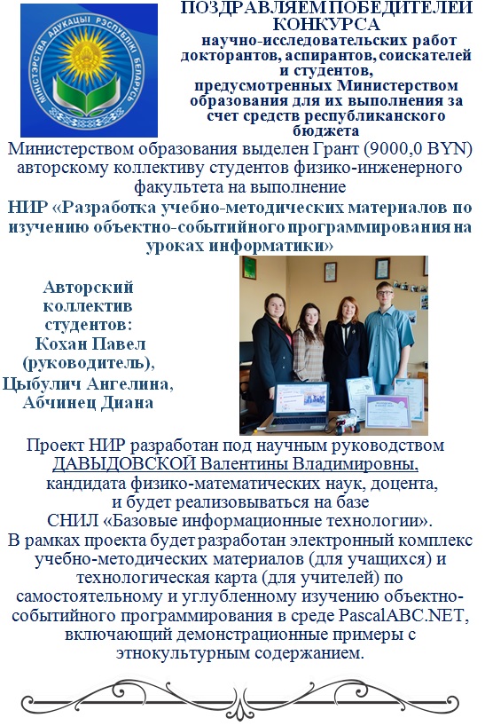Поздравляем победителей конкурса Министерства образования