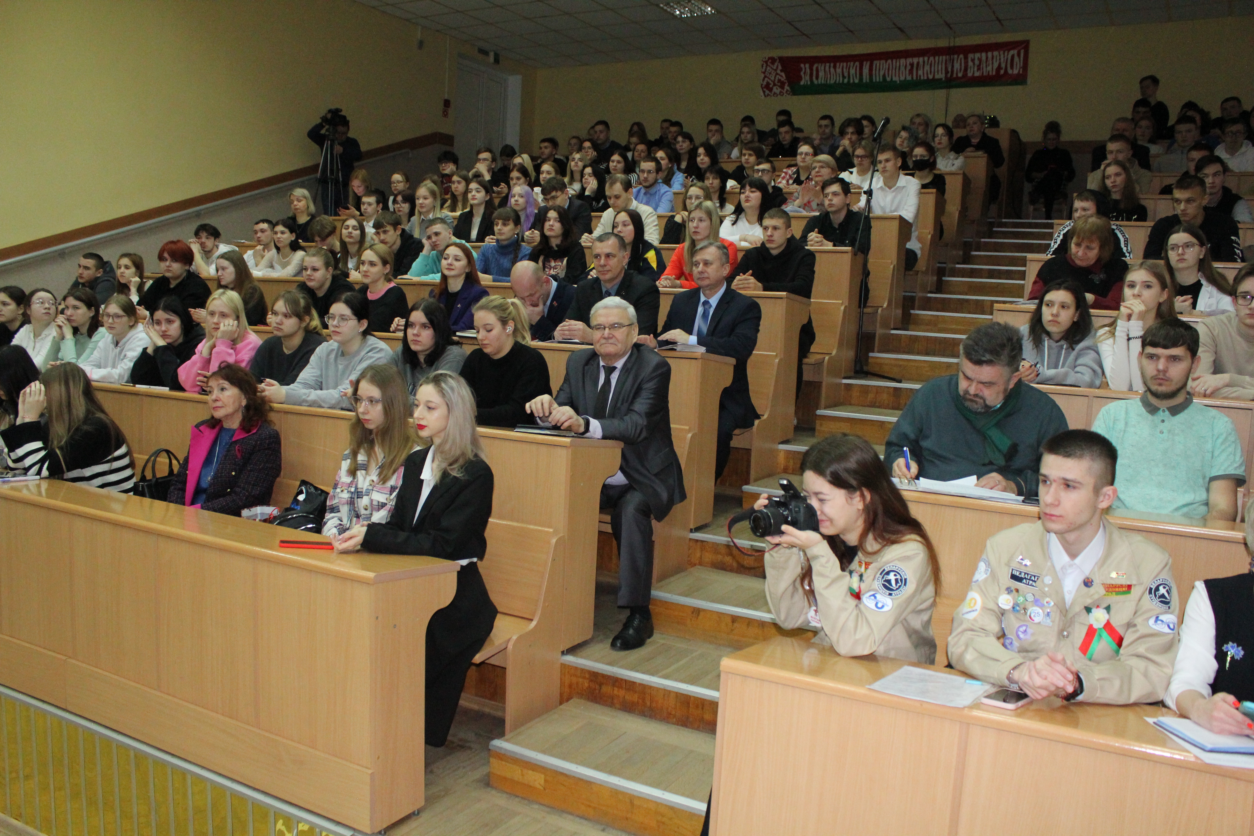 На встрече обсудили ключевые вопросы проведения Единого дня голосования в 2024 по выборам депутатов Палаты представителей Национального собрания Республики Беларусь восьмого созыва, депутатов местных Советов депутатов двадцать девятого созыва. Денис Владимирович открыто общался со студентами нашего университета, напомнил о важности участия в избирательной кампании, а также ответил на вопросы.