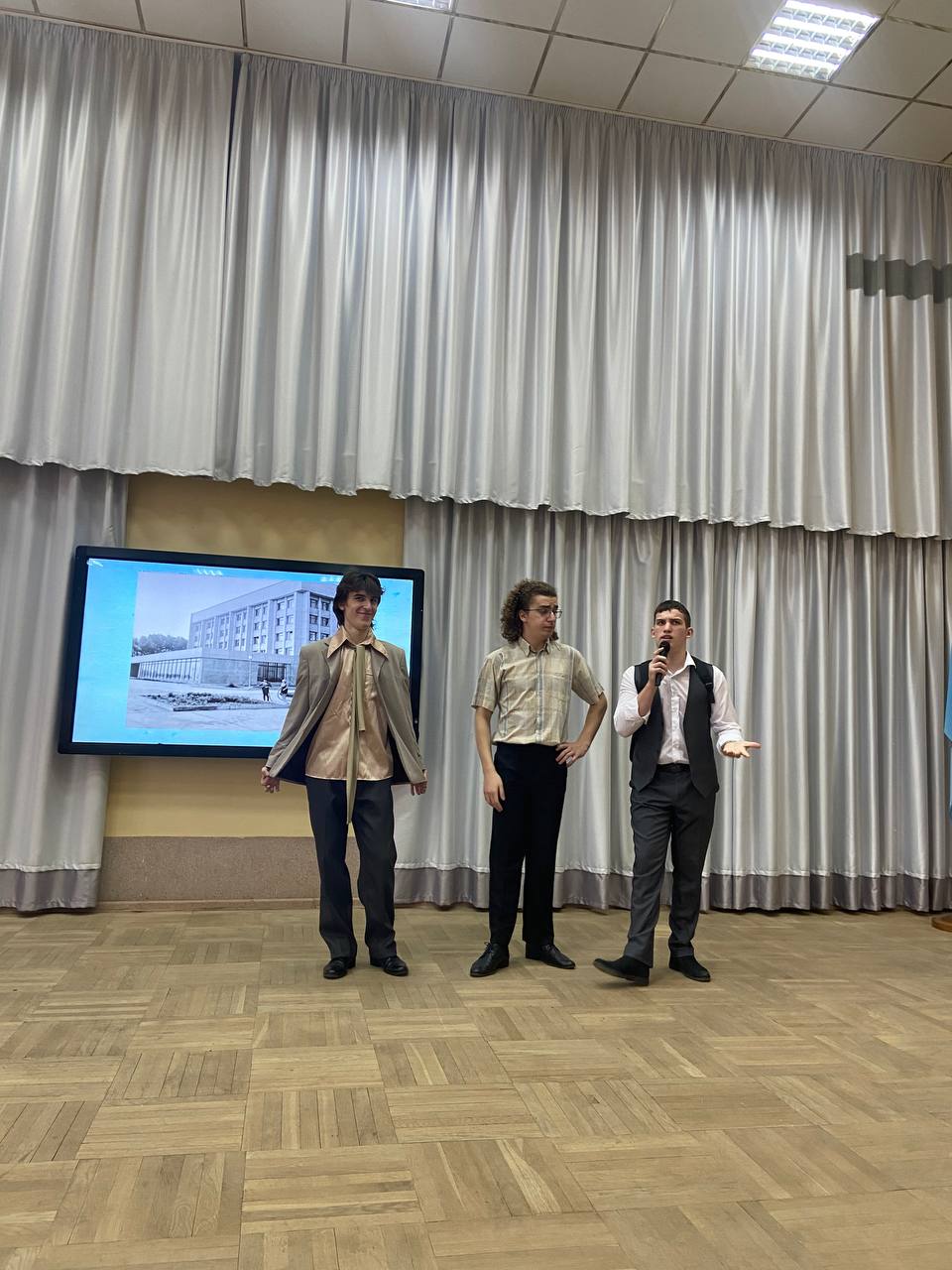Финальным аккордом конференции стала театрализованная композиция «Листая страницы истории…», подготовленная студентами филологического факультета. Десятилетия из жизни университета мелькали через призму основных исторических событий: окончание войны и начало мирной жизни, первый полет человека в космос, стройотряды, Чернобыль, распад СССР… Наполненные яркими сценическими образами, соответствующим эпохе музыкальным сопровождением, узнаваемыми кадрами кинохроники и фотодокументов, – все эти сюжеты были близки и дороги каждому сидящему в зале. Они позволили погрузиться в атмосферу прошлого, навеяли воспоминания о студенческой жизни и о трудовых буднях. Композиция не оставила равнодушным никого в зале!