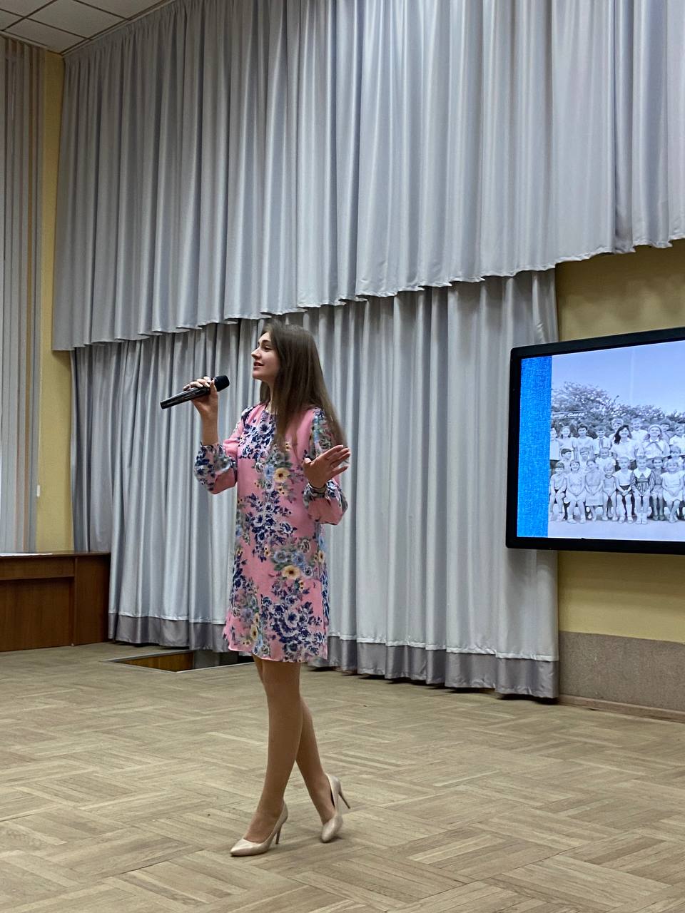 Модератором мероприятия выступила декан филологического факультета Т.Н. Сыманович. Татьяна Николаевна рассказала об основных этапах развития университета – от его создания в 1944 году до современности. Менялись эпохи, изменялось название учебного заведения, однако неизменным оставалась его значимость для всего Полесского региона как культурного и научно-образовательного центра. Отдельное внимание в докладе было уделено истории факультетов университета и его научным школам.