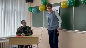 Концертную программу украсила юмореска «Военкомат» в исполнении парней 4 группы (Савостеева Евгения, Галаевского Максима, Журавского Дмитрия).